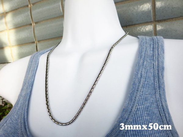 3mm幅50cm  ステンレスチェーン ロング甲丸 ネックレス