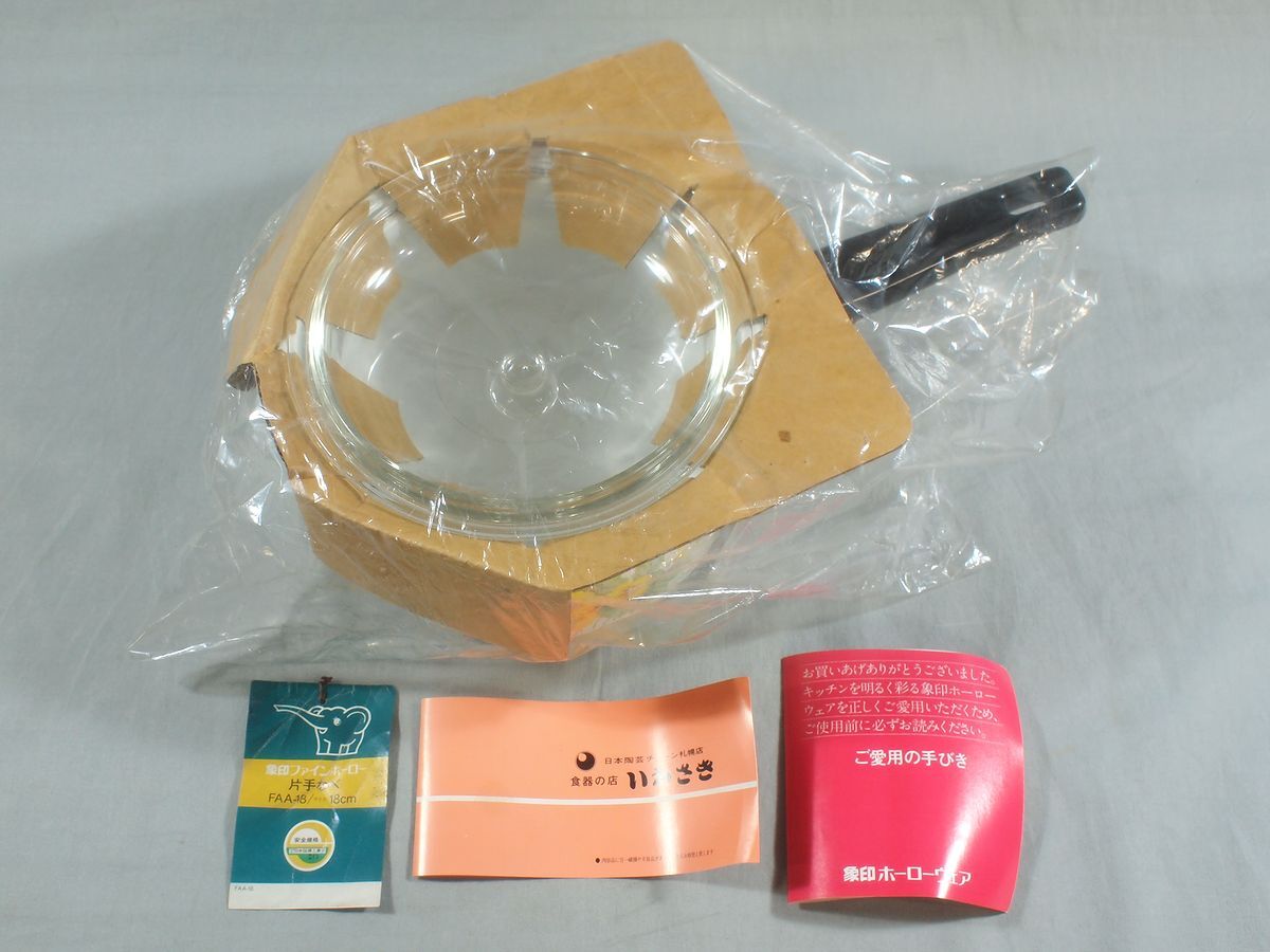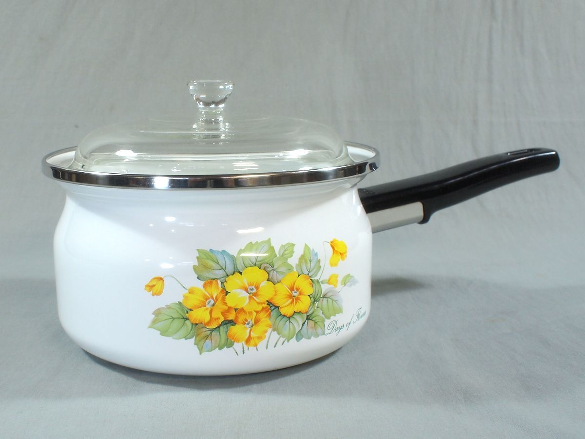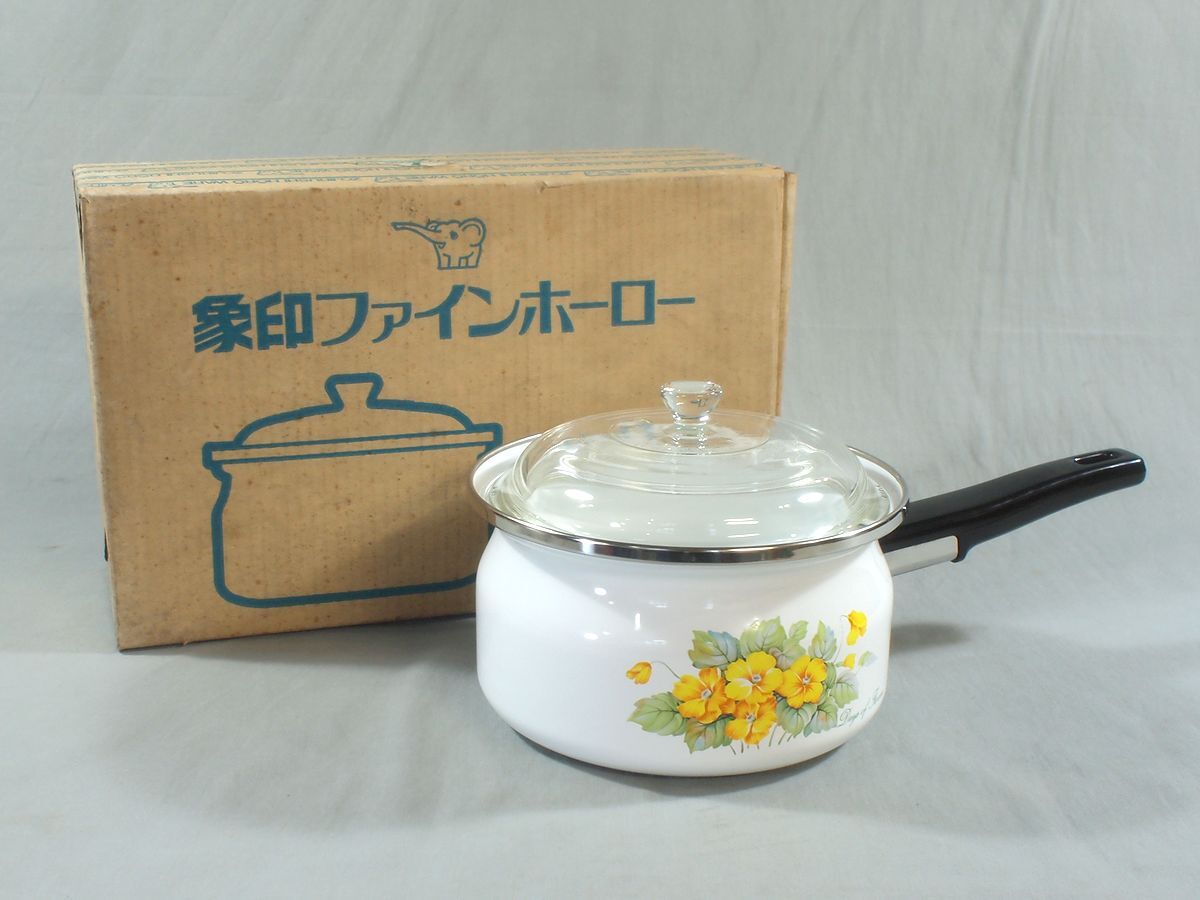 ■当時物 未使用 レトロポップ 象印 ファインホーロー 花柄 片手なべ 18cm ガラス蓋 琺瑯 鍋 調理器具 キッチン 雑貨 昭和レトロ アンティーク ヴィンテージ■