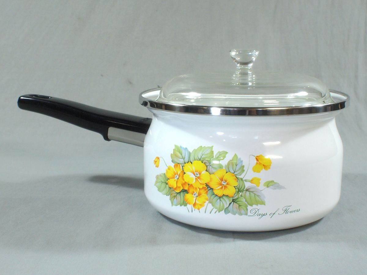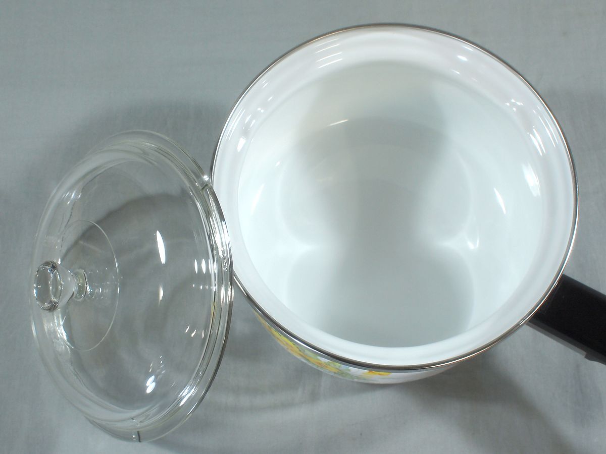 ■未使用 レトロポップ 象印 ファインホーロー 花柄 片手なべ 18cm ガラス蓋 琺瑯 鍋 調理器具 キッチン 雑貨 昭和レトロ ヴィンテージ■