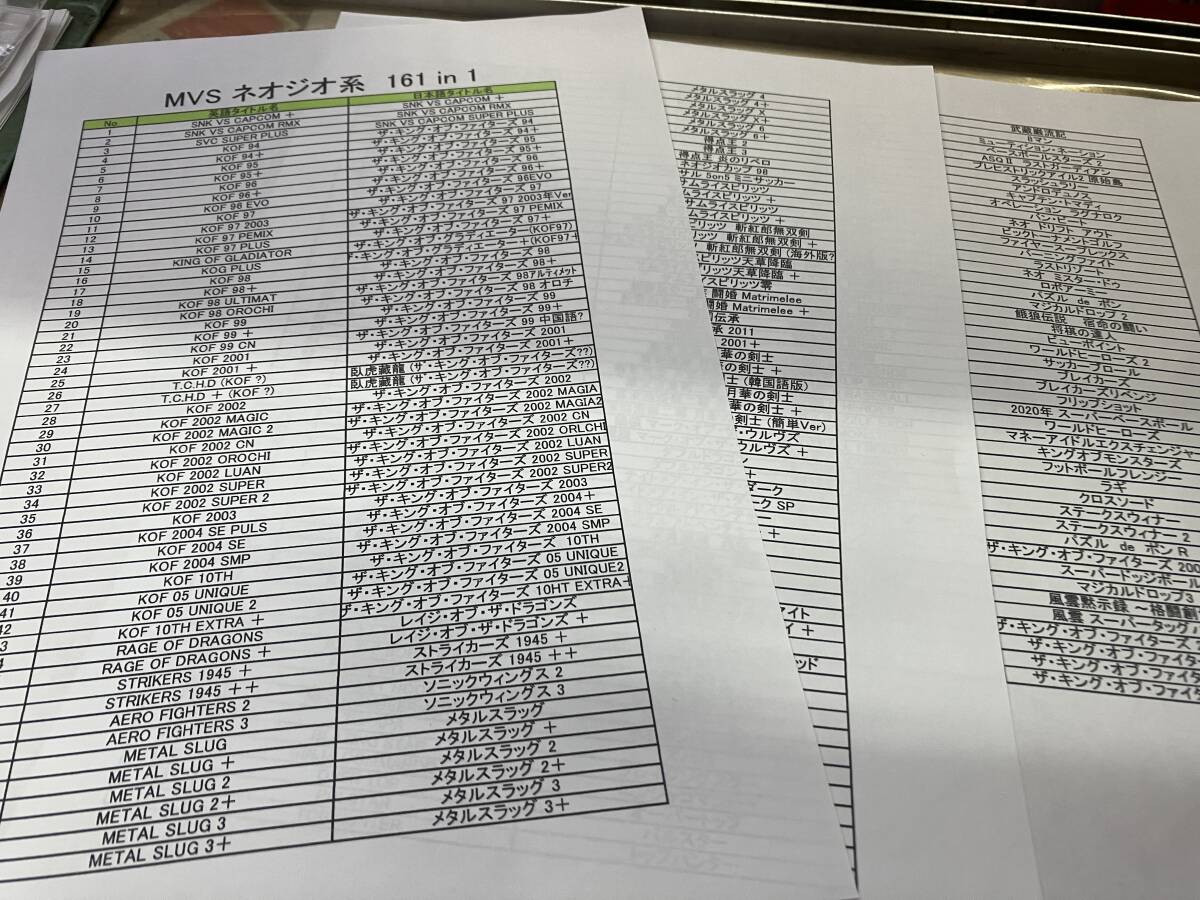 商品説明 | 現在では入手困難なMVS Multigame Series2の初期型です。 なので、マザーボードの種類によっては選択したゲームと立ち上がるゲームが違うバグが発生する場合がございます。 バグが発生しない推奨マザーボードはMV1A・MV1B・MV1C バグ確認マザーボードはMV1FZ・MV1FZS その他の1スロ・2スロ・4スロ・6スロ等のマザーボードは所有していない為、バグは未確認です。 購入時の初期設定でほぼ全てのゲームの難易度がレベル8でしたが、現在は全てレベル4に設定しています。 おまけとして3枚目の画像のゲームリストを日本語化したものをお付けいたします。 | |