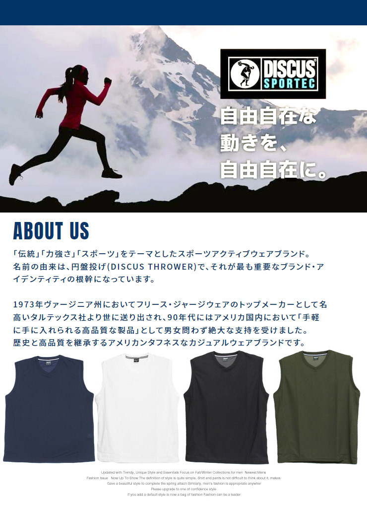 | 商品説明 | DISCUSより、毎日着るものなので着心地にも重視したノースリーブTシャツの登場です。 |