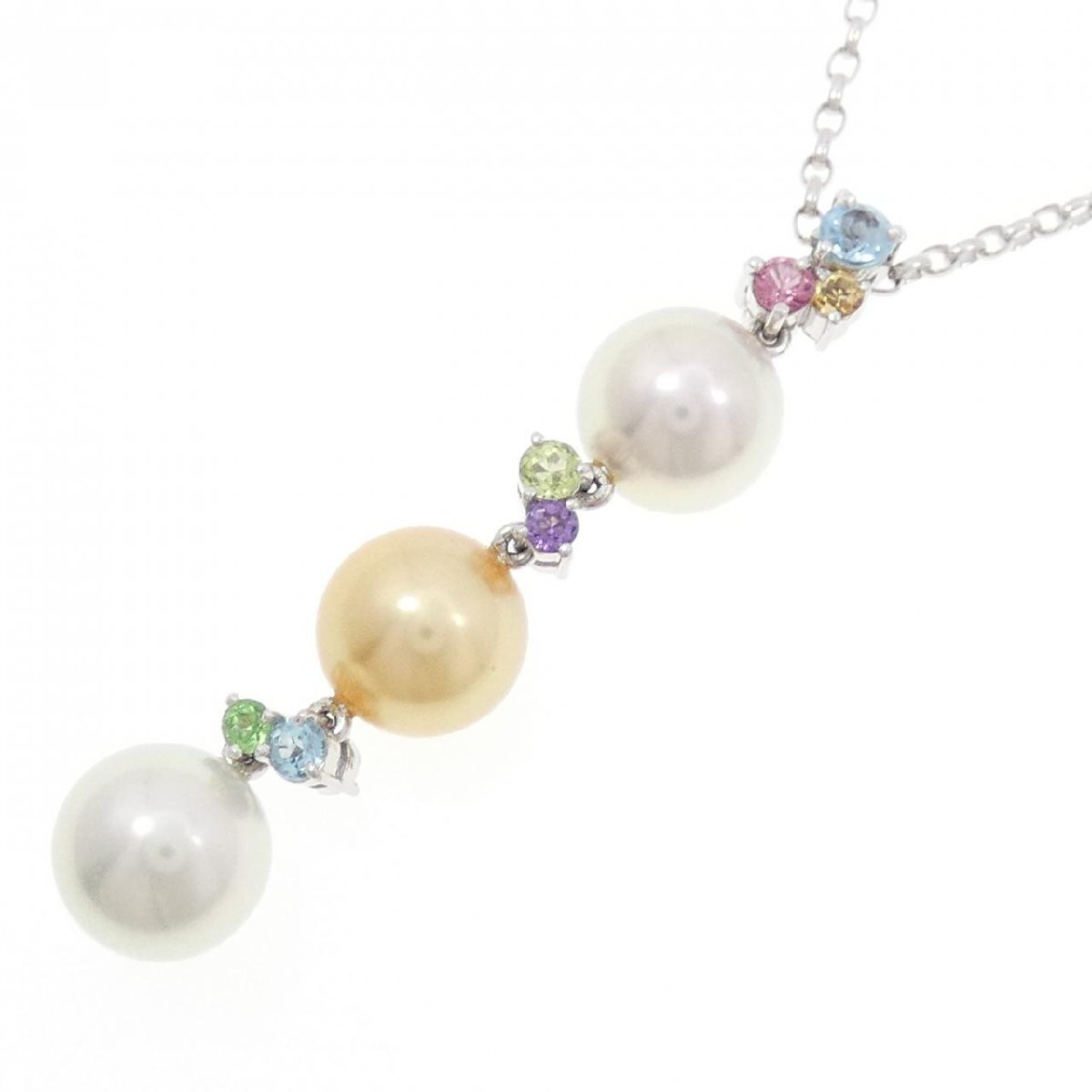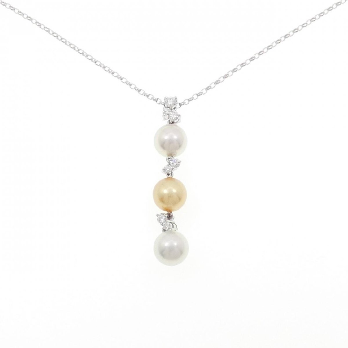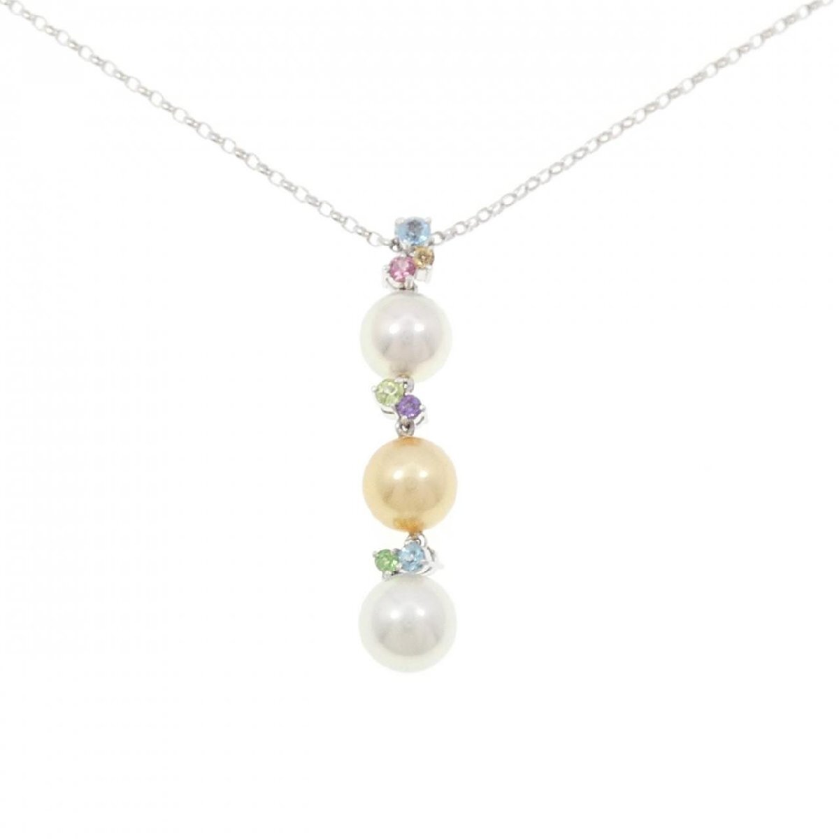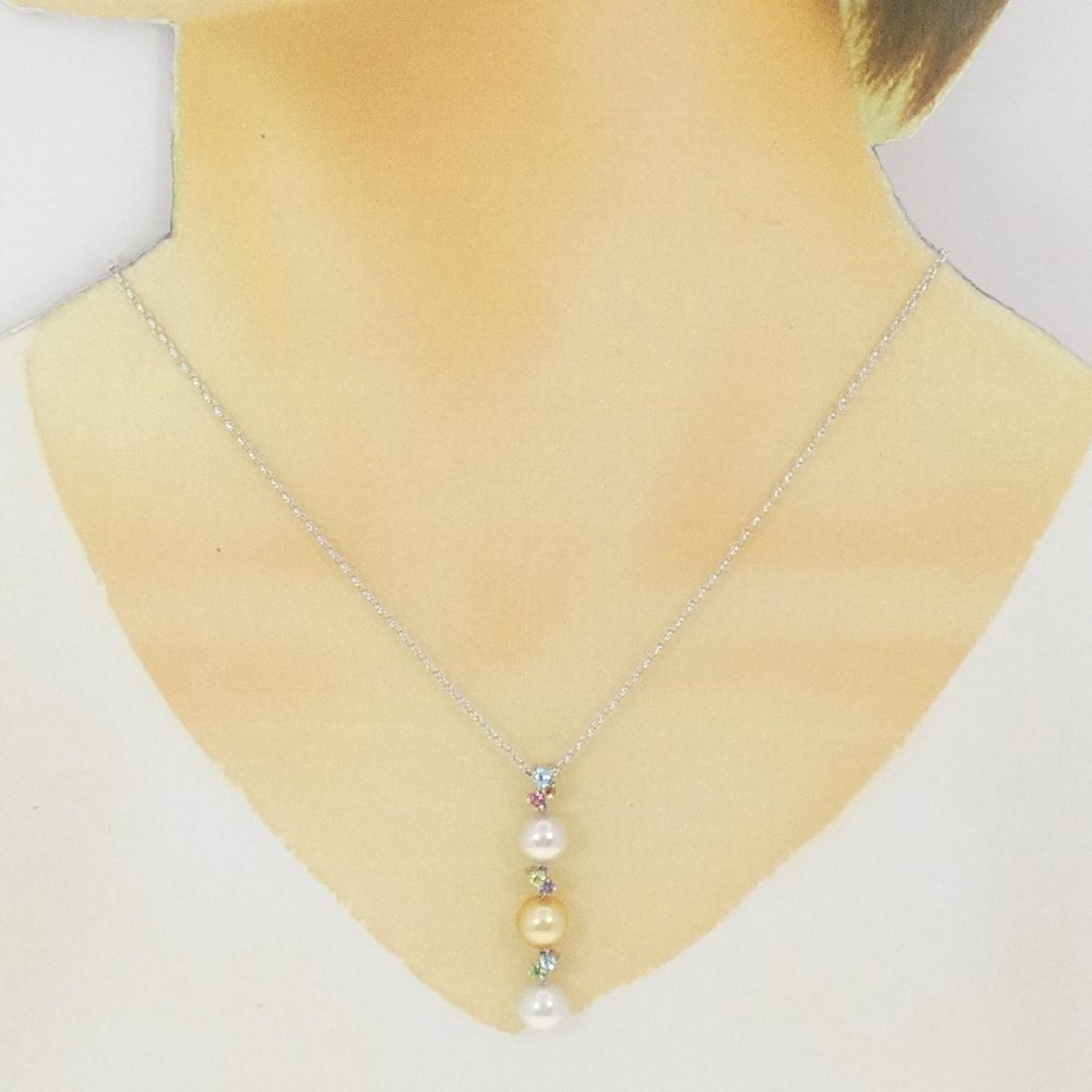 ホワイトとゴールドの2色のパールが優しい光を放つネックレス。装いによってお楽しみ頂ける、気分が明るくなりそうなカラーストーンと品良く煌めくダイヤモンドのリバーシブルデザインです。