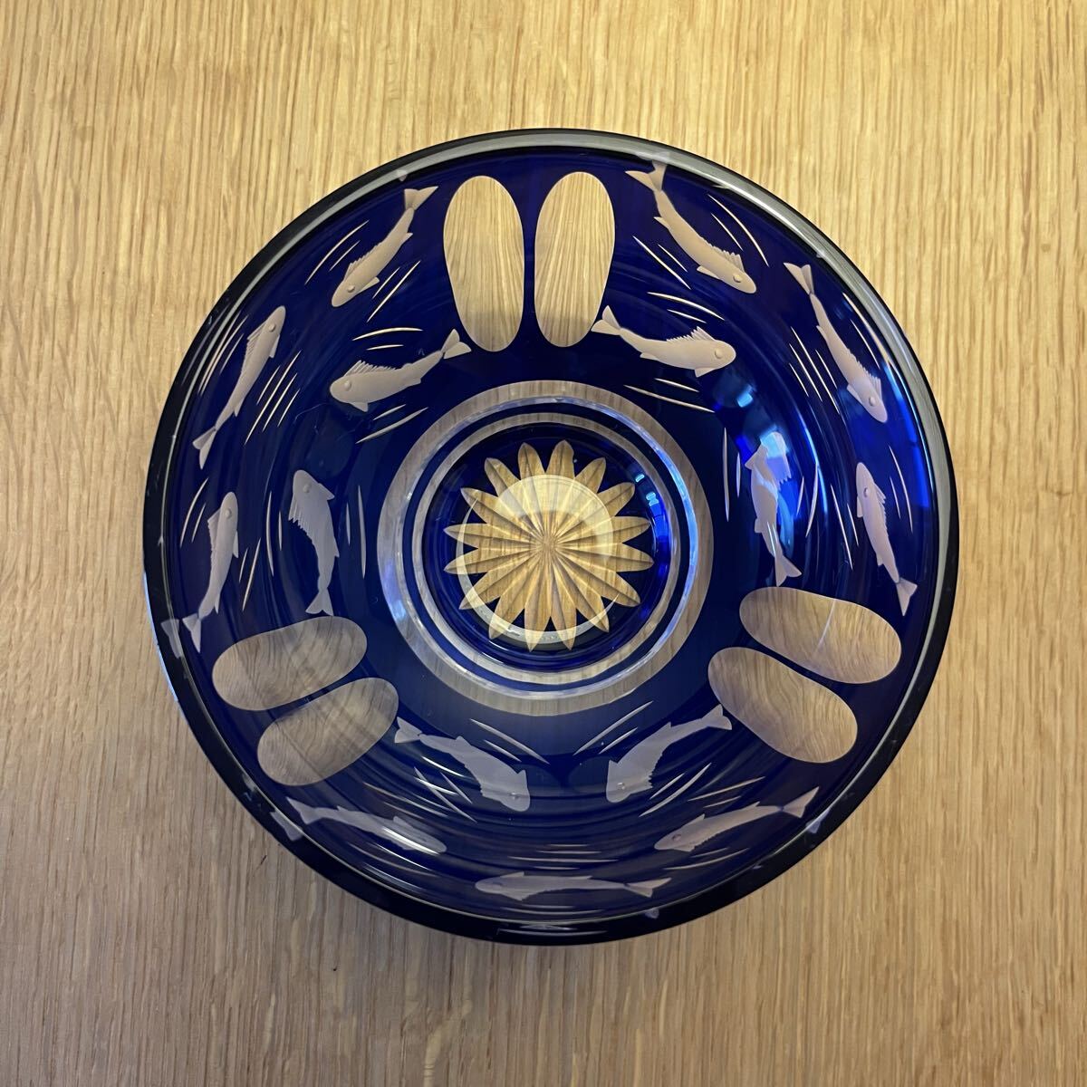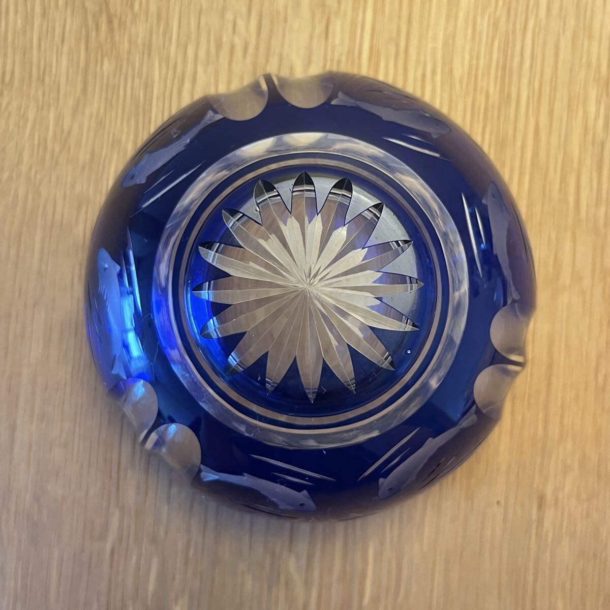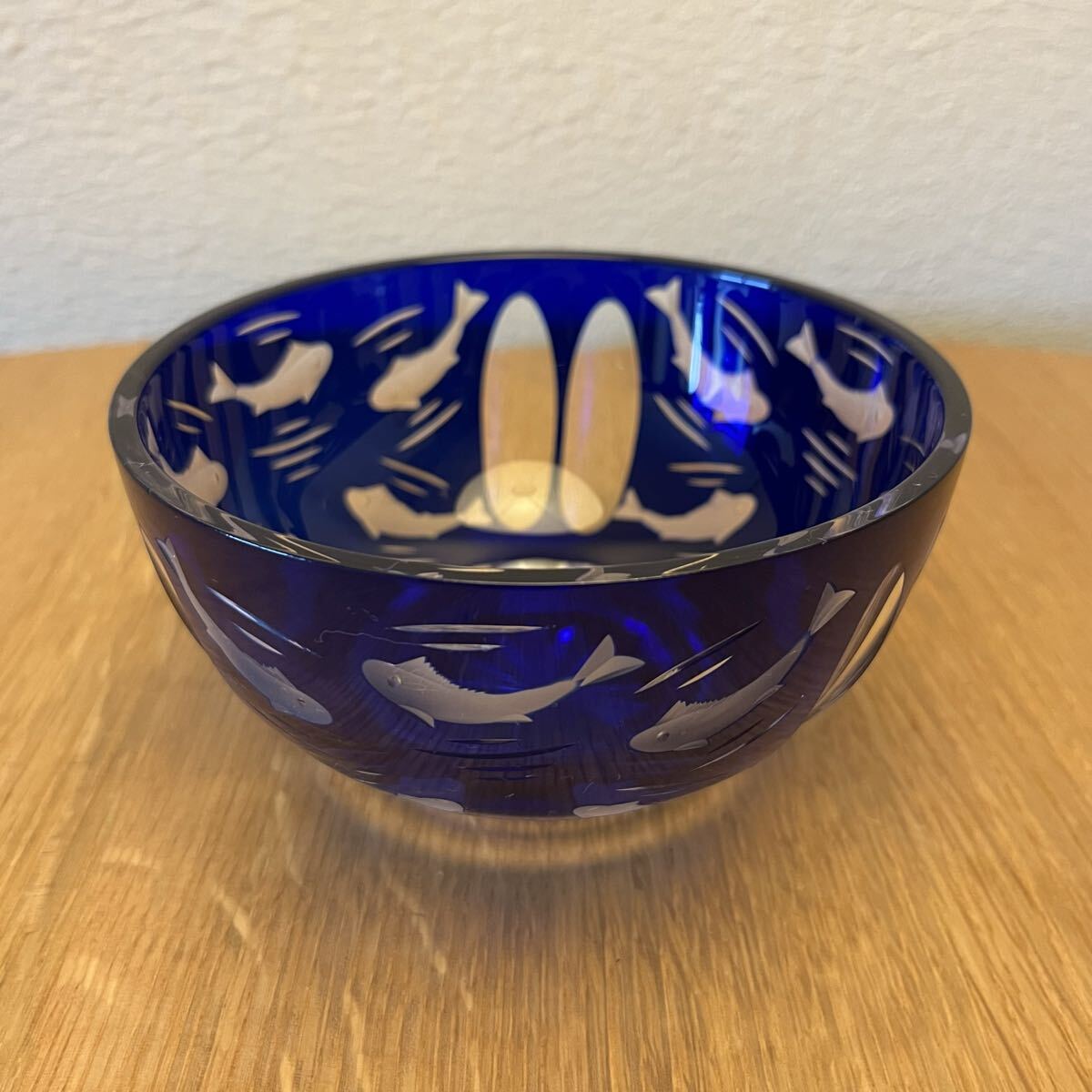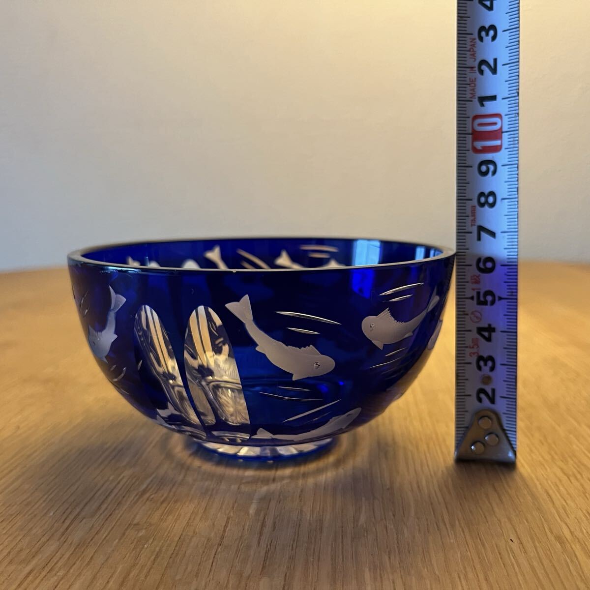 【美品】江戸切子 切子 冷茶碗 丸小鉢 食器 青 ブルー 魚 可愛 ガラス 工芸 切子グラス 硝子 コバルトブルー