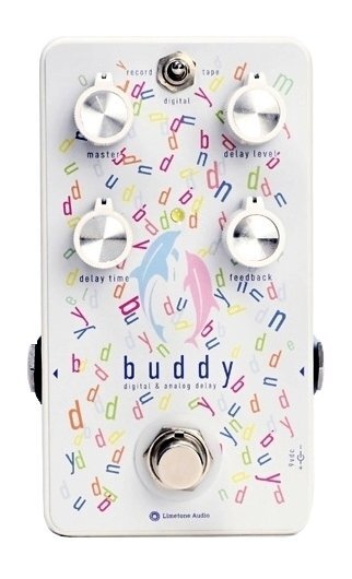 入力信号のダイナミクス、レスポンスをそのまま伝える新しいコンセプトのディレイペダル。 一般的なデジタルディレイは入力した信号を内部でデジタル信号に変換してディレイ音を付加し、最後にアナログ信号に戻して出力します。 Limetone Audioのbuddyは、入力されたドライ音をアナログ信号のまま扱い、デジタルで生成したディレイ音を内部の高品質ミキサー回路でアナログミックスして出力します。これにより、原音の音質やニュアンスを変化させること無く出力することが可能です。 歪みエフェクターと組み合わせた場合も、その歪みエフェクターが生み出すニュアンスをそのまま伝えることができ、サウンドの変化を最低限にしたサウンドメイクが可能です。 ディレイの音色はデジタル(digital)、アナログ(tape、record)から選択出来ます。 アナログディレイは、ディレイ音のピッチの変化が発生しないアナログディレイサウンドです。 masterつまみを搭載しており、ONにすることによって全体の音量をブースト・カットすることが可能です。ディレイとブースターを同時にオンにするようなシチュエーションにおいて、buddy1台でそれが実現できます。delay levelをゼロにするとブースターとしても使用できます。 ※buddyのアナログディレイサウンドは、一部デジタル回路を使用して生成しています。 接続端子:Input、Output、DC9V In 付属品:取扱説明書、保証書 外寸:幅(W)65 mm、奥行き(D)110 mm、高さ(H)52 mm 重量:253g 入力インピーダンス:1MΩ 出力インピーダンス:12.5kΩ以下 消費電流:約80mA |