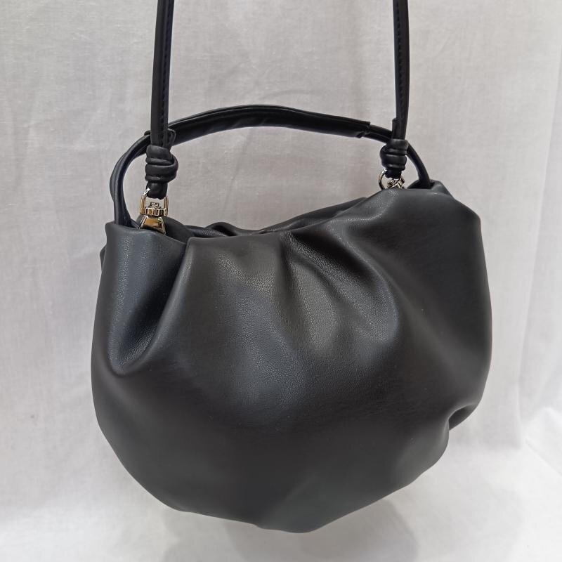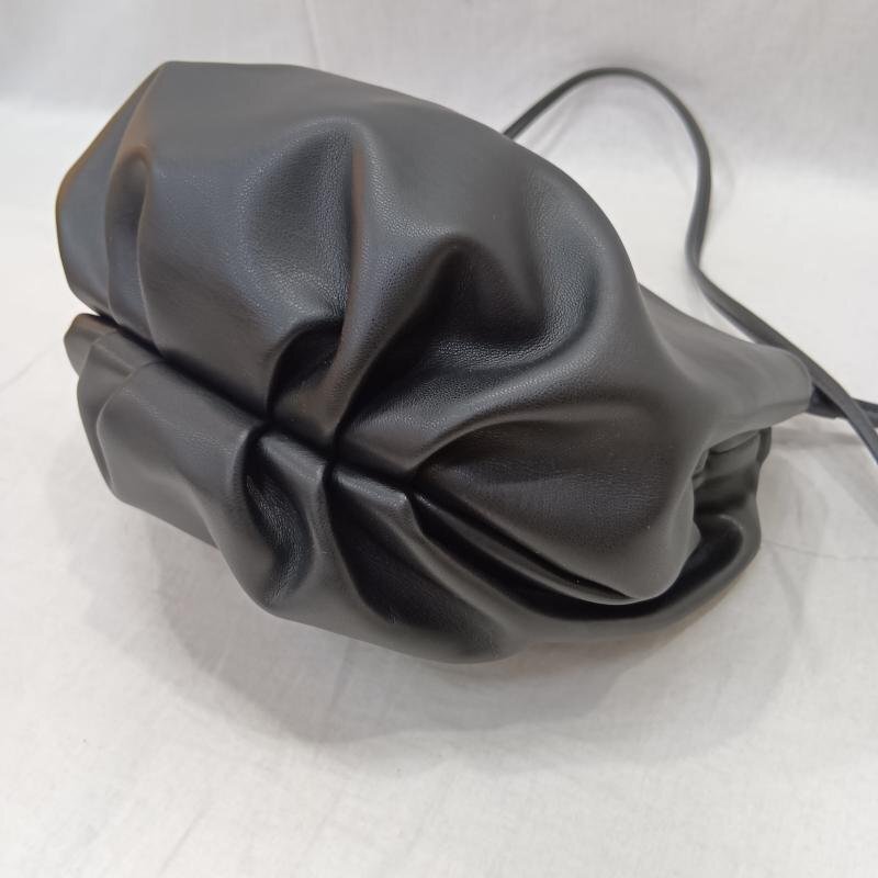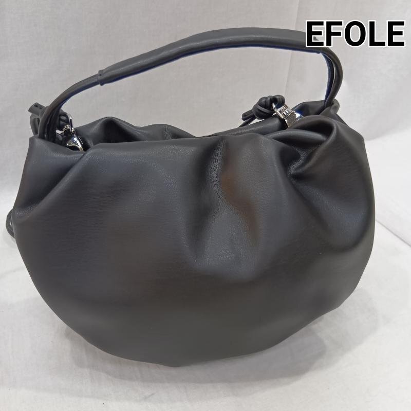 古着 macoto×EFOLE コラボ ギャザーミニショルダーバッグ black フェイクレザー -