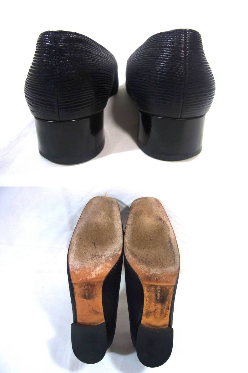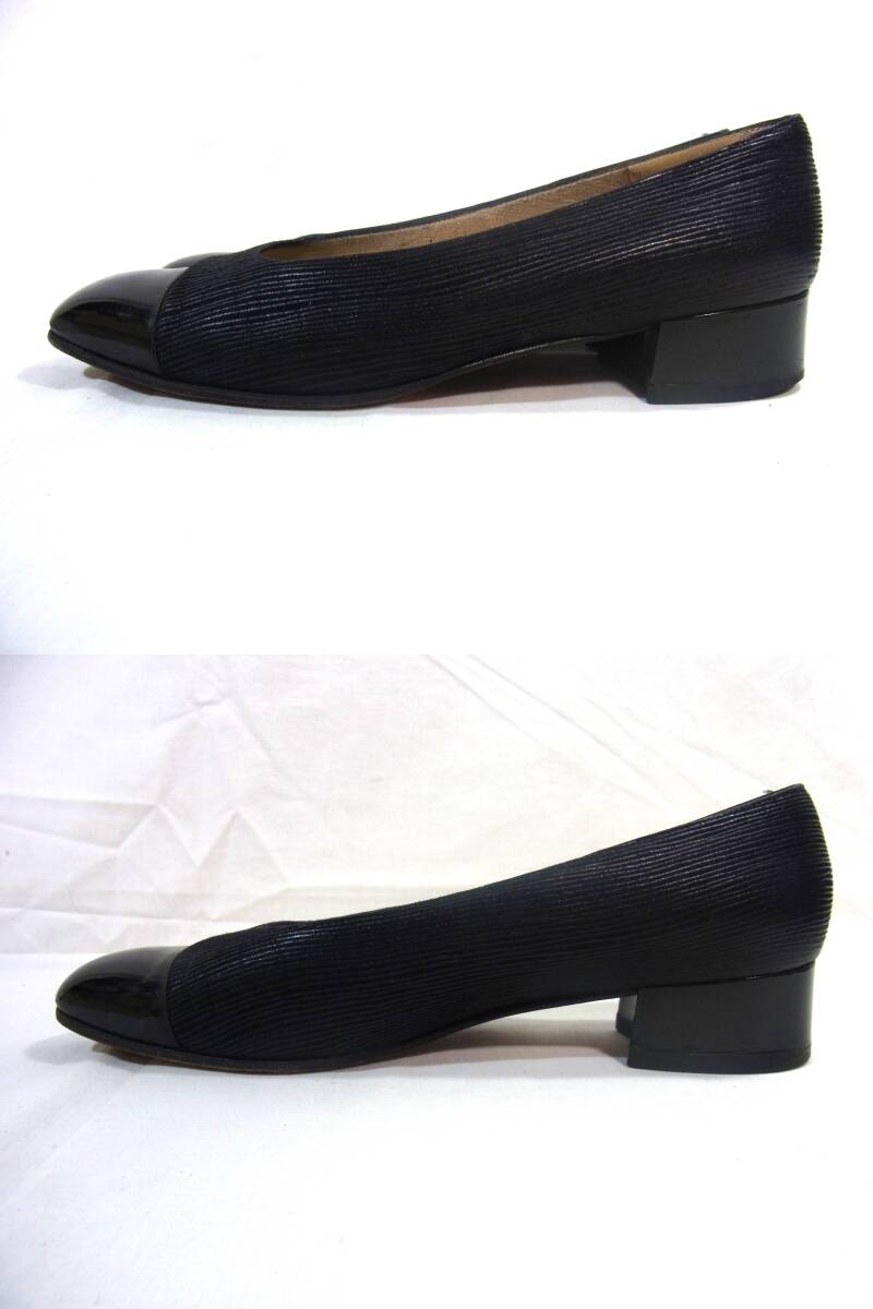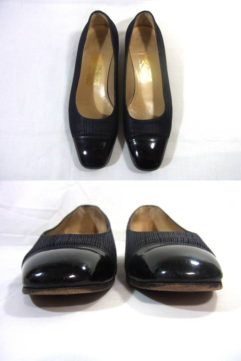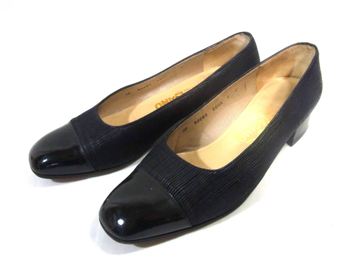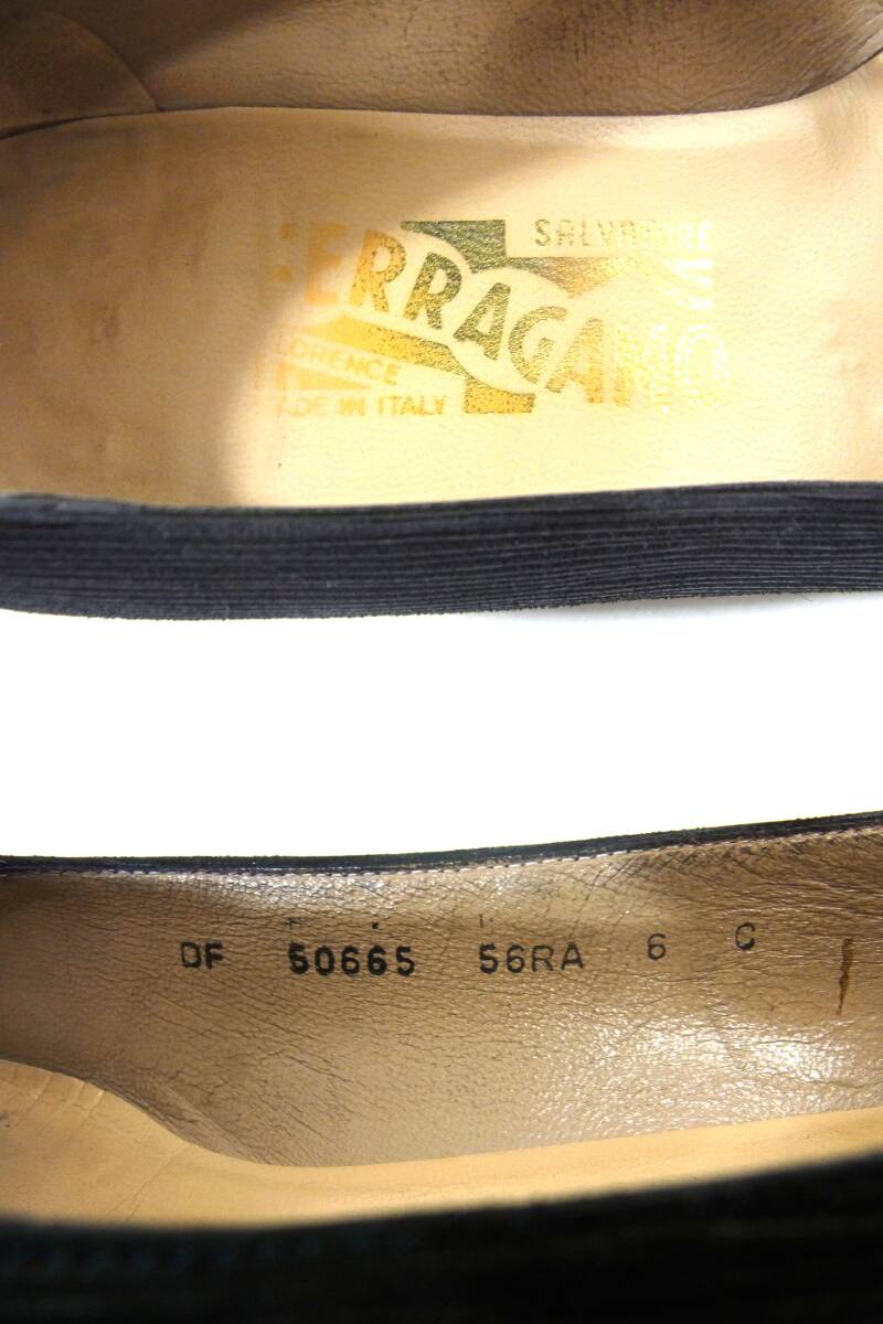 USED フェラガモ Ferragamo ローヒール 上品なパンプス 6C (23.5㎝相当) 黒 リペア 使用感多