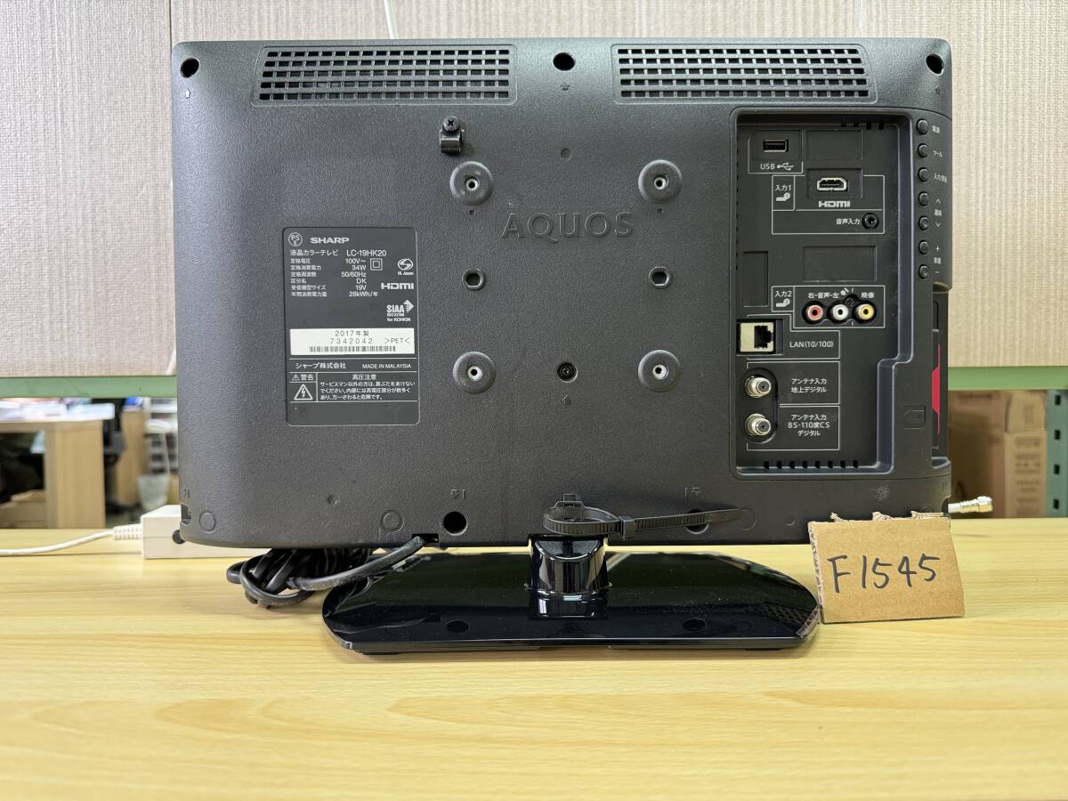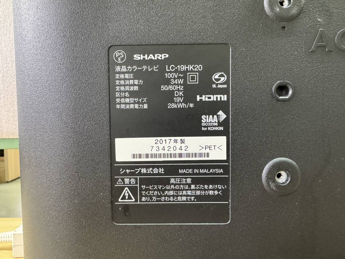 19型 シャープ AQUOS LED 液晶テレビ 2017年製 LC-19HK20 管理番号F1545