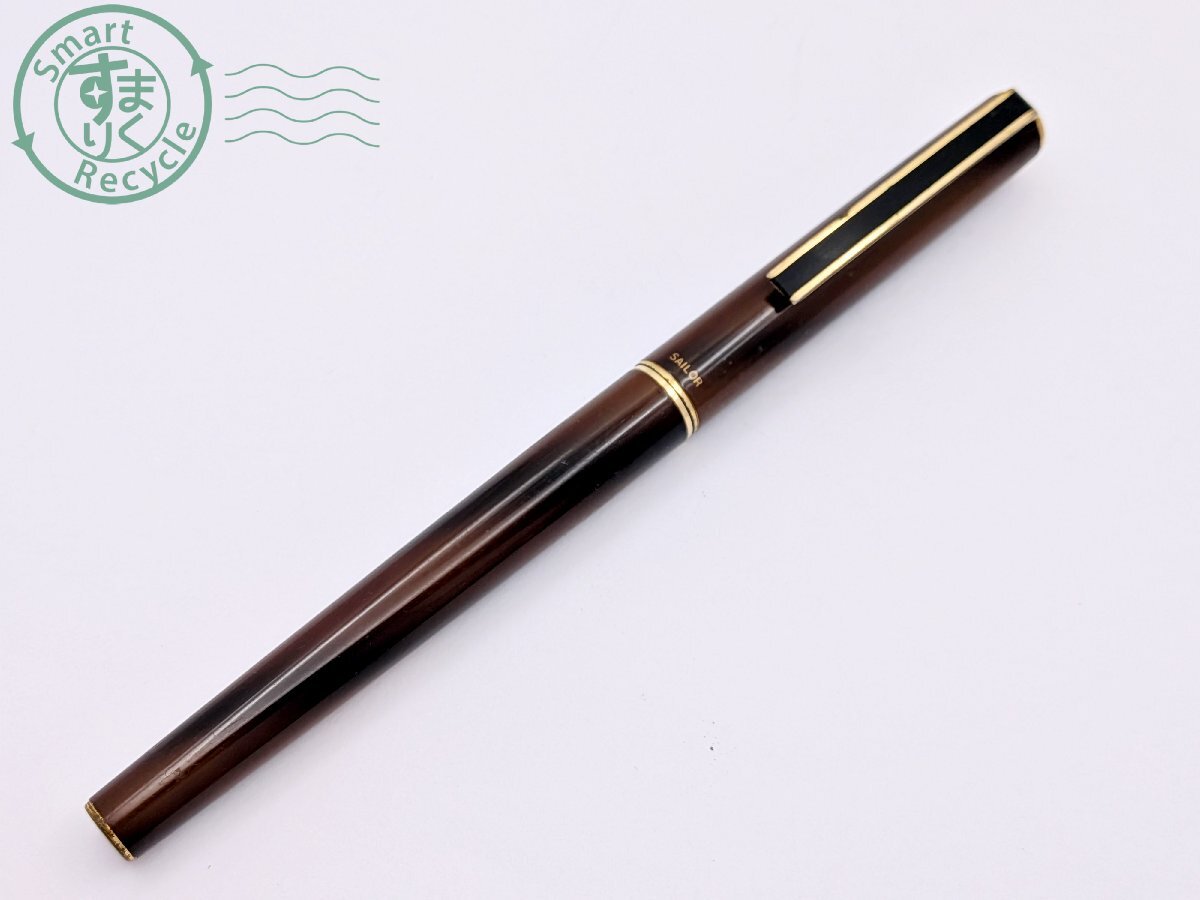 ★ SAILOR セーラー 万年筆 マーブルブラウン系 ゴールドカラー ペン先 14K 2 110 刻印 カートリッジ式 筆記用具 中古品 | |||