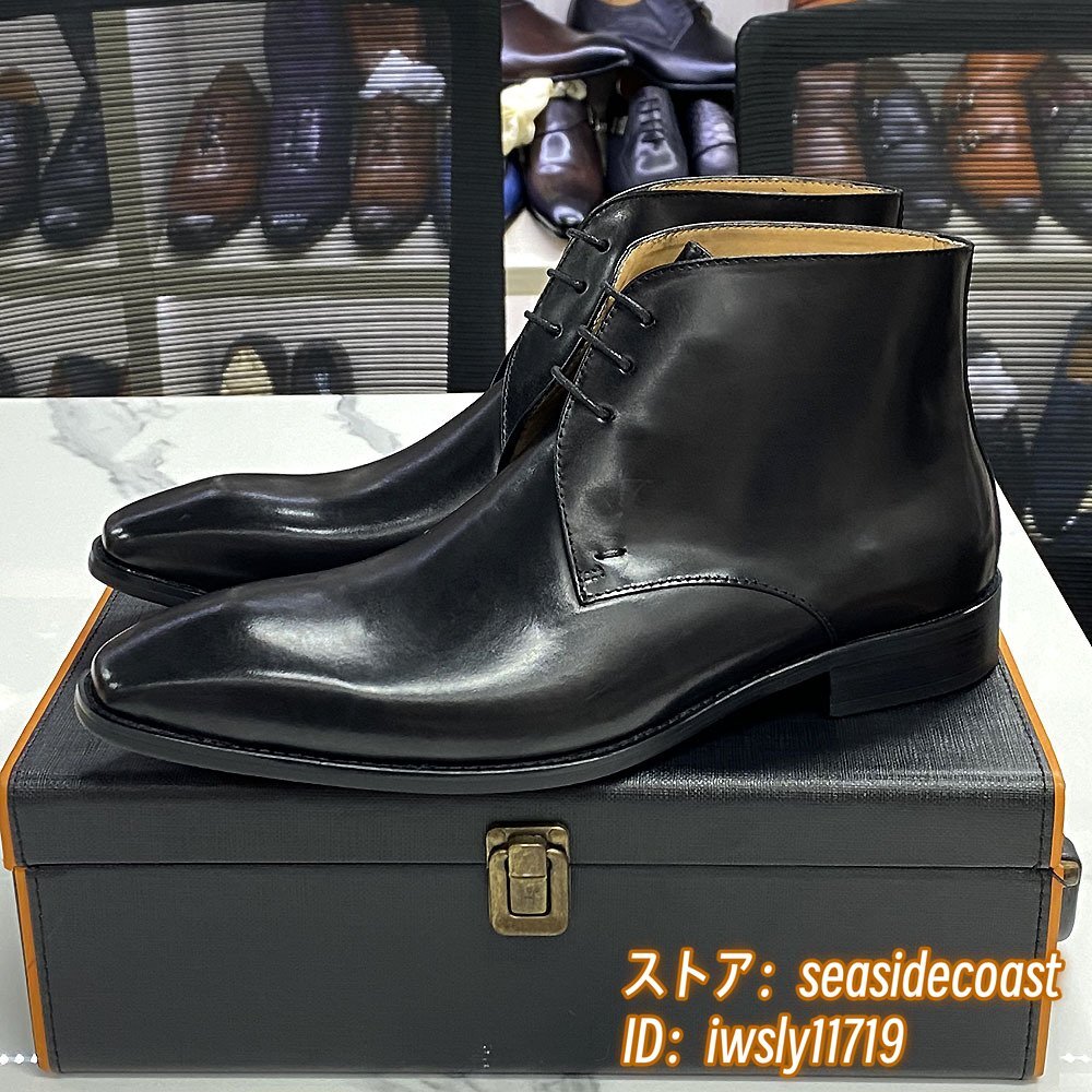 超希少*定価13万 マーティンブーツ レザーブーツ 本革 職人手作り ショートブーツ イギリス風 牛革 エンジニアブーツ 皮靴 ブラック 27.5cm