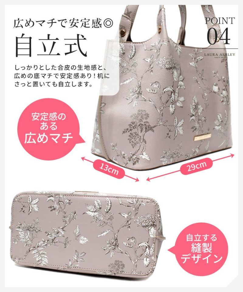 LAURA ASHLEY(ローラ アシュレイ)から、シボ革生地を使用した人気の花柄を使用した大人可愛いトートバッグが登場。