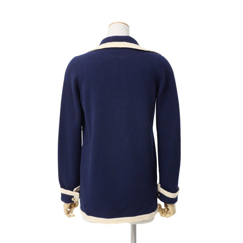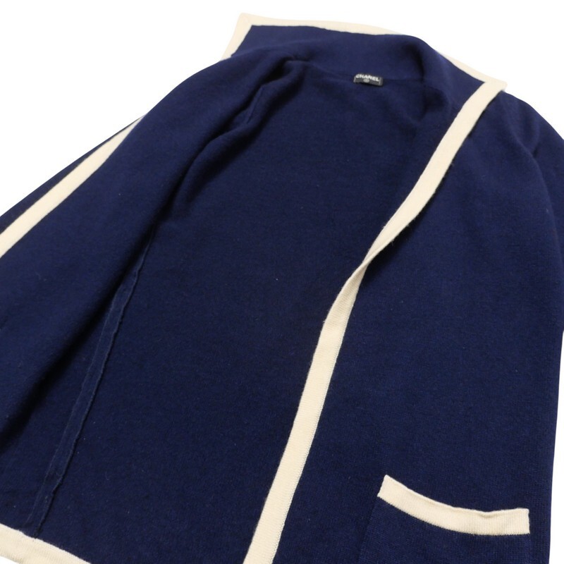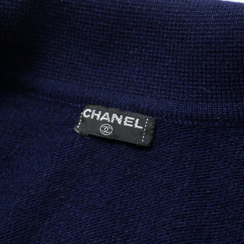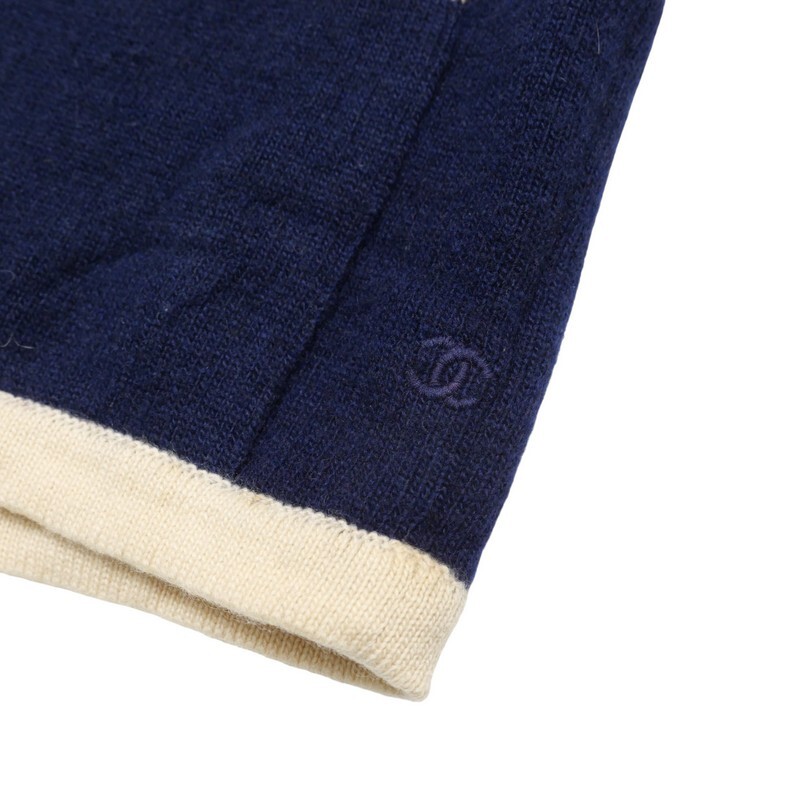 TI9579=シャネル/CHANEL*ヴィンテージ*スコットランド製*カシミヤ*CC/ココマーク釦・刺繍*ボタンレス*ニットカーディガン*ネイビー系 | |||