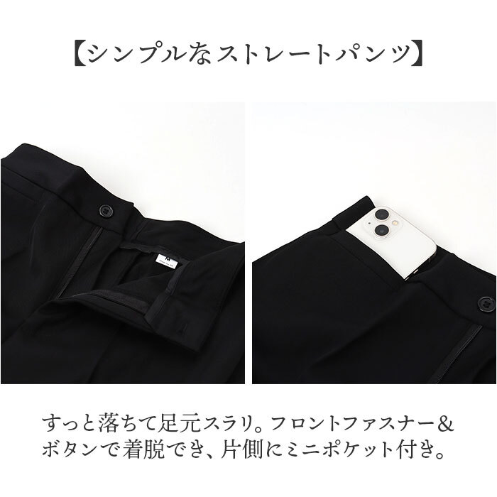 | 商品説明 | ・・【通勤やフォーマルシーンで活躍】 ・使い勝手の良いベーシックデザイン。長く愛用できる、レディース用「ビジネススーツ」。 ・【上品なキレイめスタイルが完成】 ・シンプルできちんと感のあるジャケット&パンツ。年代問わず着用しやすい仕上がり。 ・【すっきりフォルムのジャケット】 ・肩パッドでシルエットをキープ&エレガントなラペルデザイン。スリムに魅せる絶妙な仕立て♪ ・【ベーシックなシングルタイプ】 ・フロントボタンを1つ配置し、スマートな印象を演出。左右にはポケットを。 ・(※)ポケットはご自身で糸を取ってご使用ください。 ・【シンプルなストレートパンツ】 ・すっと落ちて足元スラリ。フロントファスナー&ボタンで着脱でき、片側にミニポケット付き。 ・【ロングシーズン使える万能アイテム】 ・薄すぎず厚すぎない程よい生地感。ジャケットは裏地付で着用時のムレを軽減、摩擦からも保護。 ・【インナー次第でおしゃれ上級者♪】 ・デザイン性のあるブラウスなどで遊べば、グンと垢抜け!シーンに合わせて楽しめる☆ ・【お子さまの学校行事にもおすすめ】 ・フォーマルシーンにも馴染むデザイン。お子さまの入学・卒業式への参加もOK! |