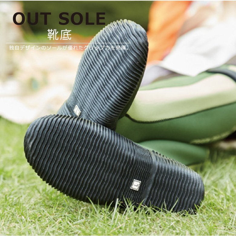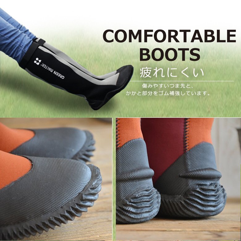 ・傷みやすいつま先と、かかと部分をゴム補強しています。