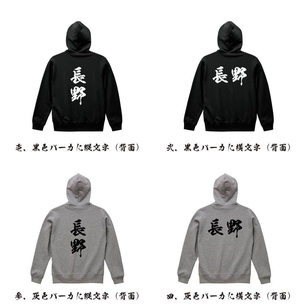 長野 オリジナル パーカ 書道家が書く プリント フルジップ パーカー S M L XL XXL 110 130 150 【 長野 】