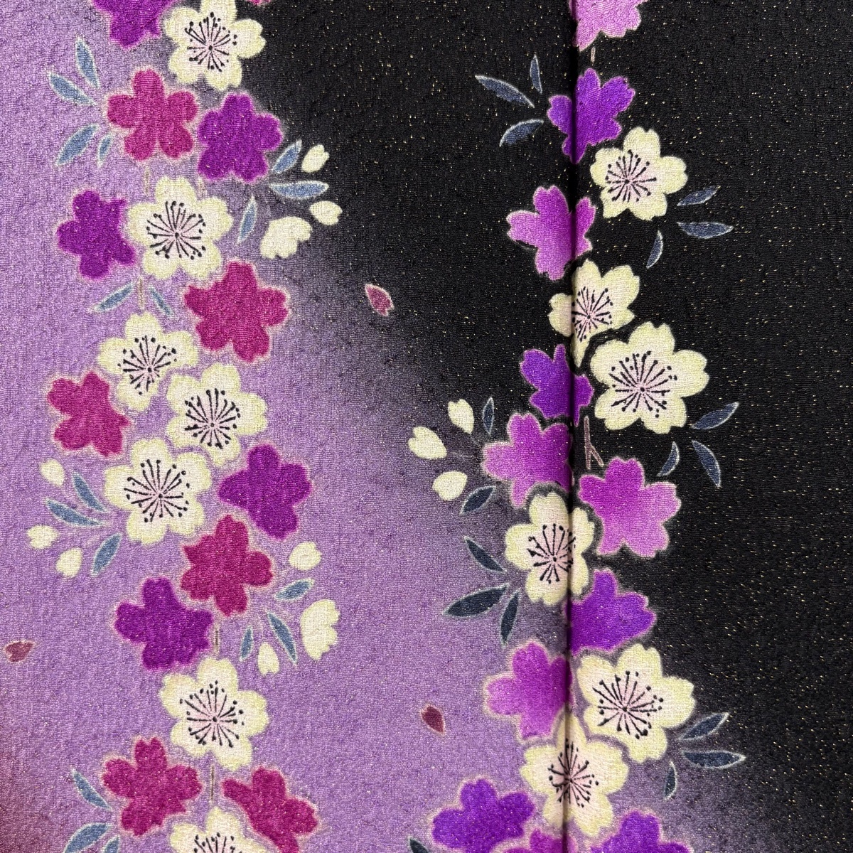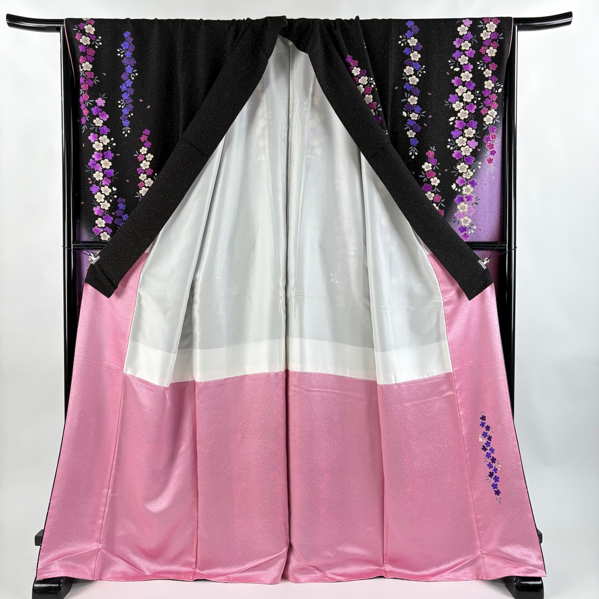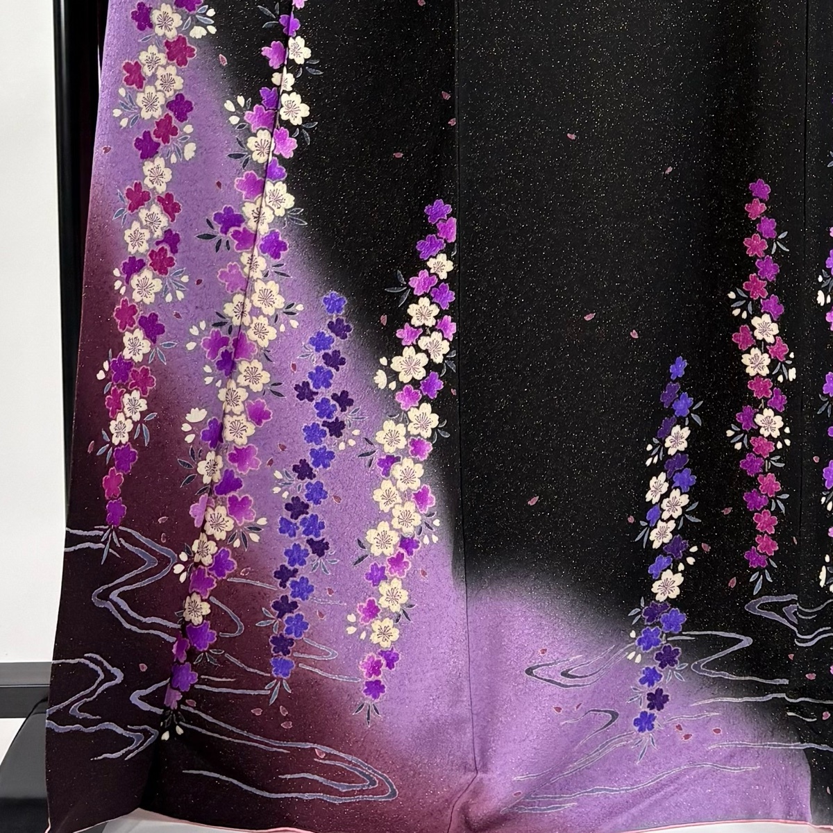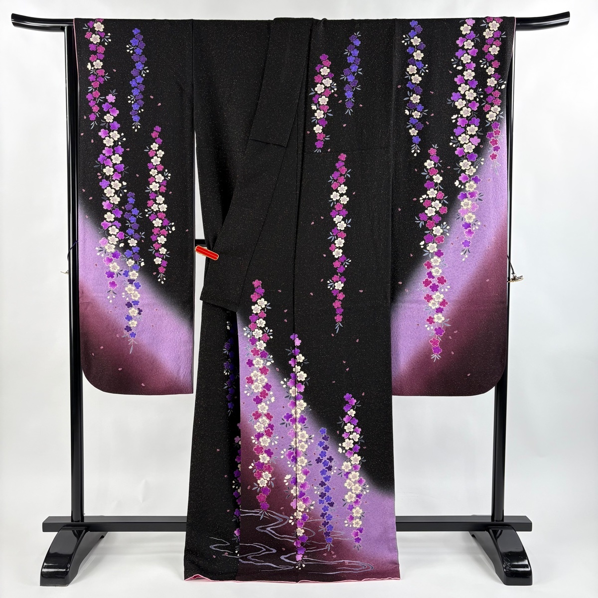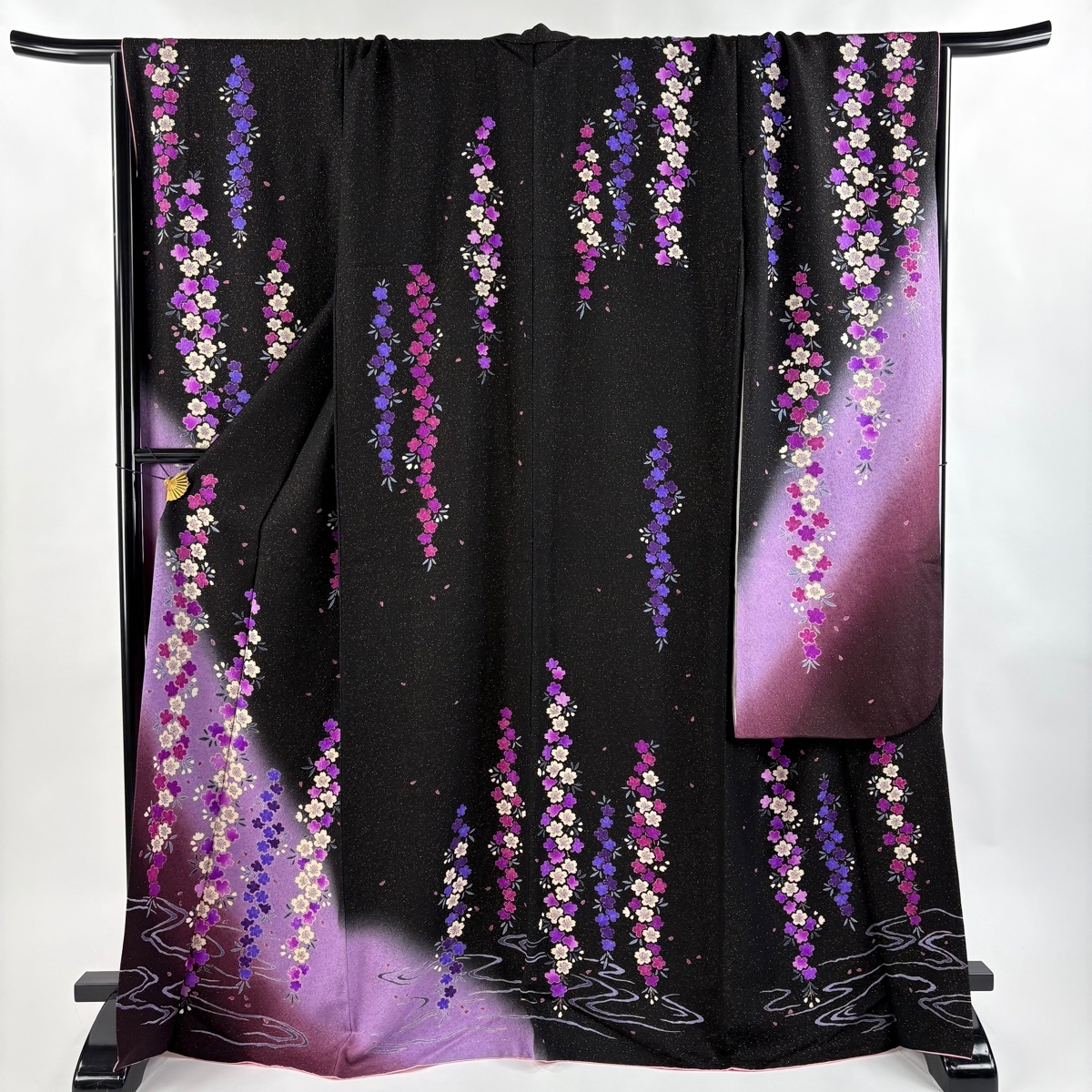 振袖 美品 逸品 落款 桜 流水 金通し ぼかし+ 黒 袷 身丈170 裄丈71 L 正絹 【中古】 |