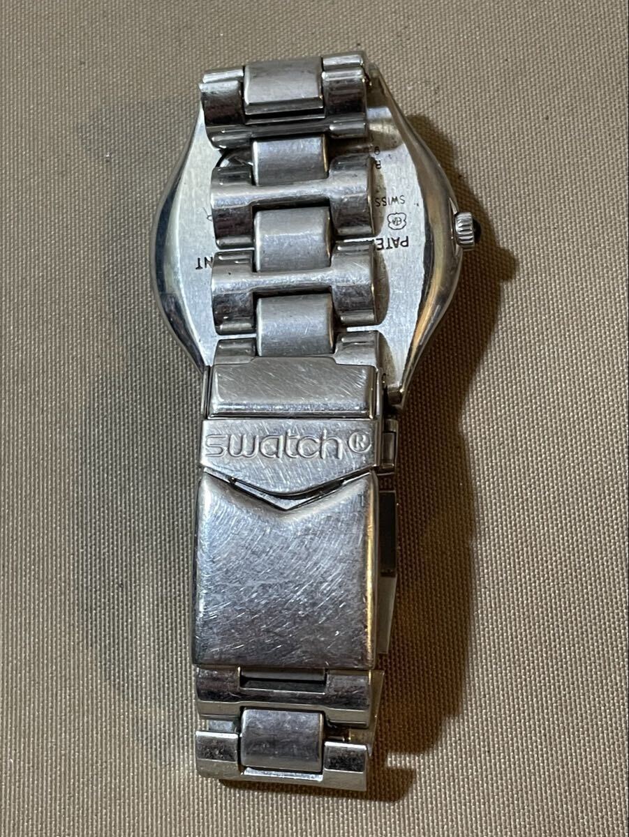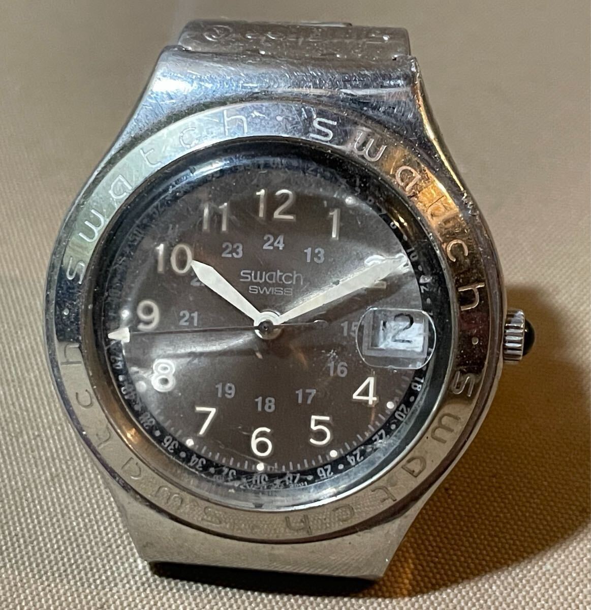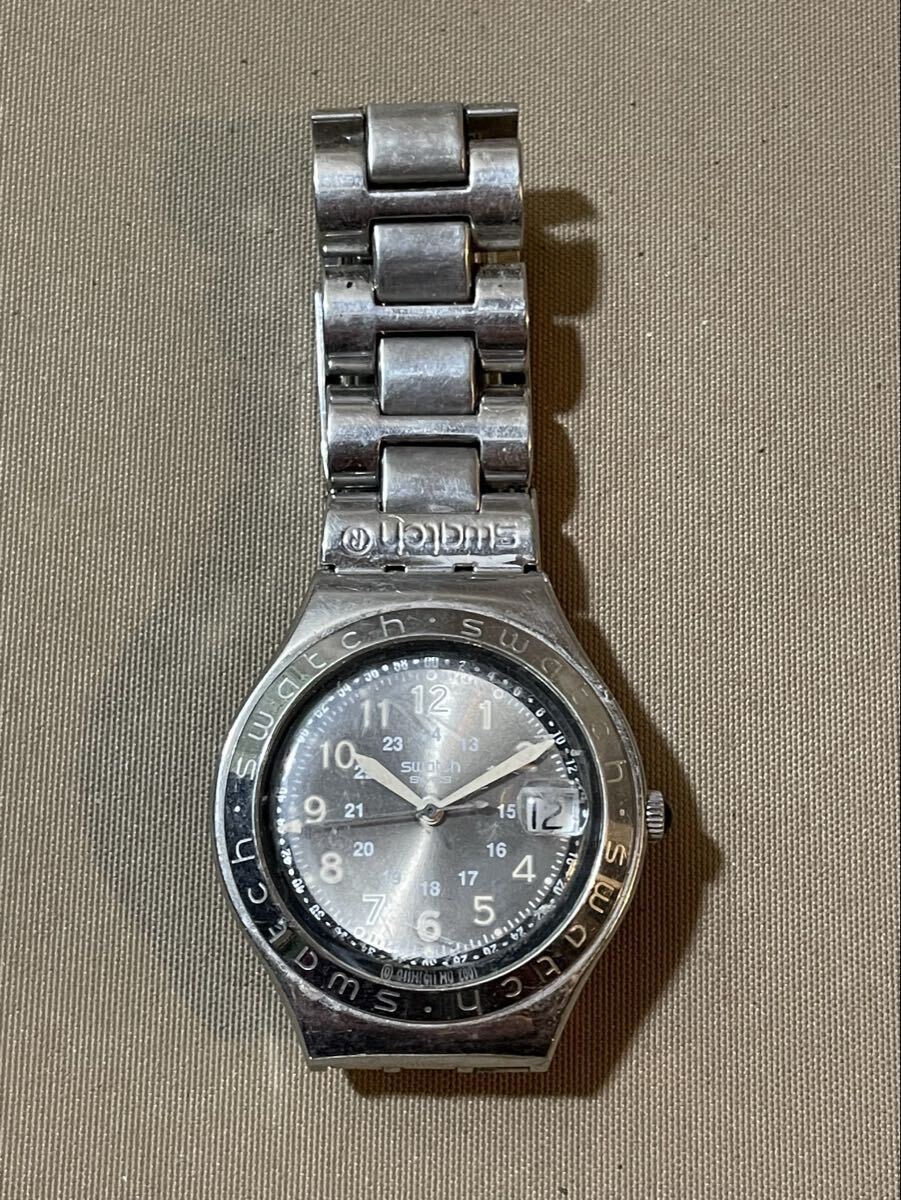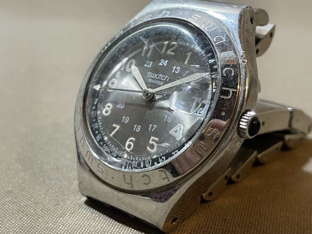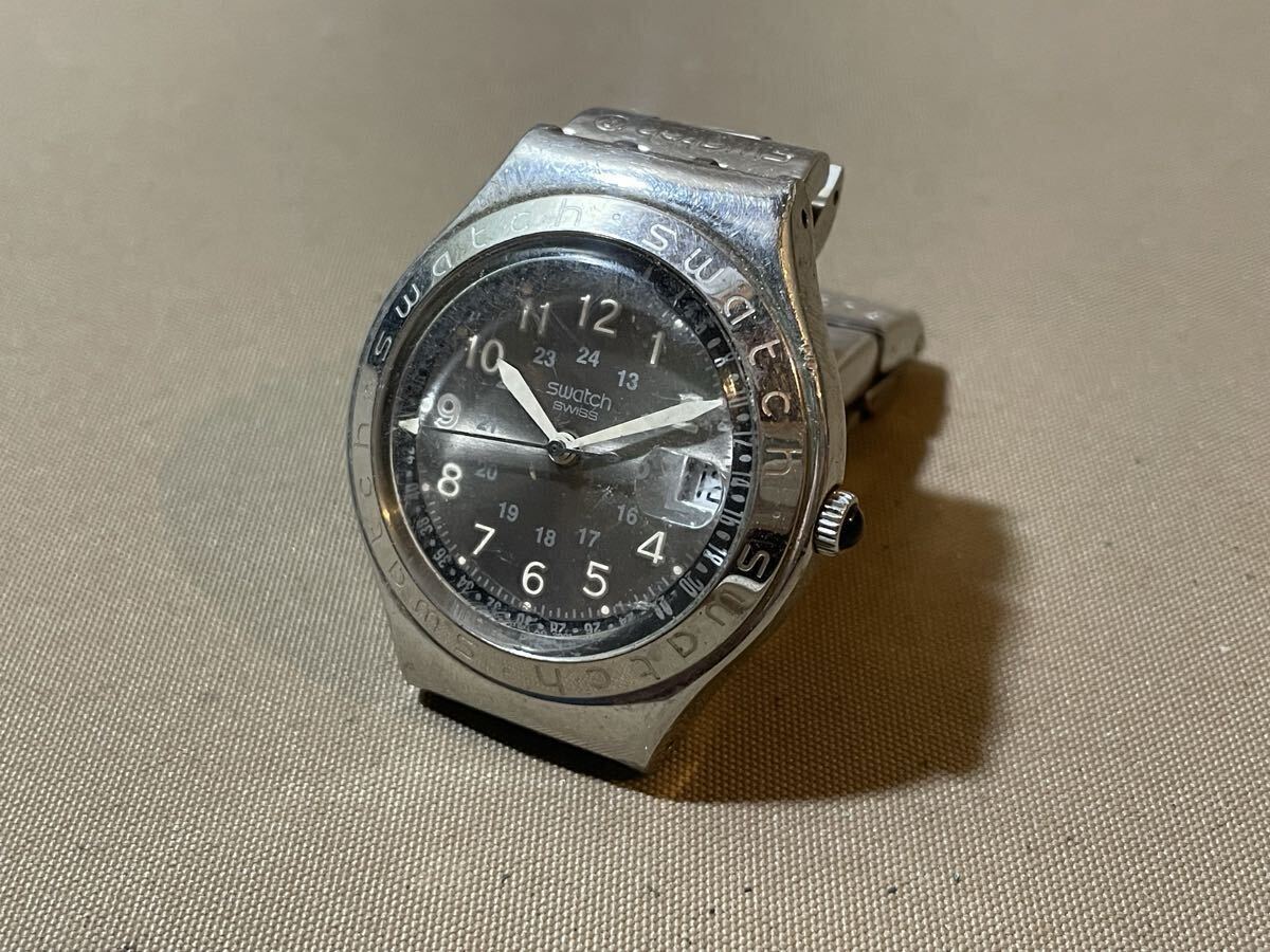 SWATCH スウォッチ IRONY アイロニー SWISS スイス AG2001 カレンダー デイト 日付 日付表示 カレンダー 3針 三針 シルバー ブラック文字盤 電池式 時計 腕時計 メンズ ユニセックス ビンテージ ヴィンテージ レトロ 昭和レトロ レトロ雑貨 古道具 古物 vintage USED
