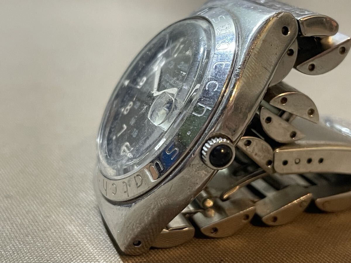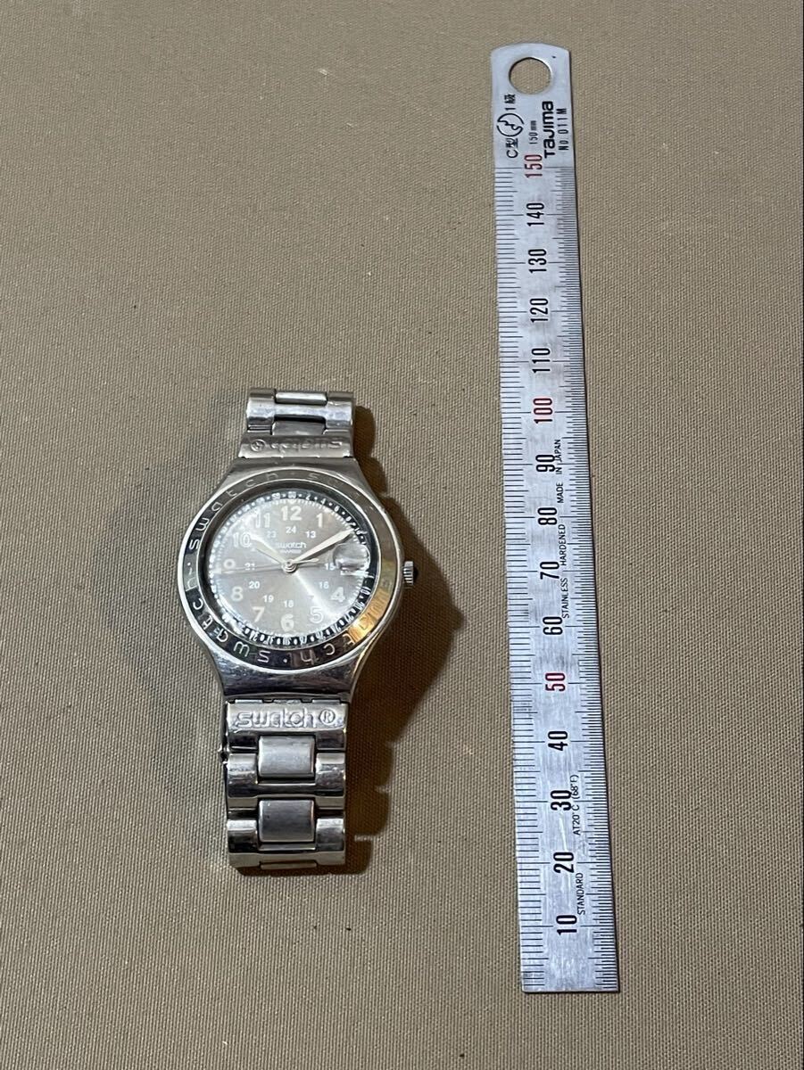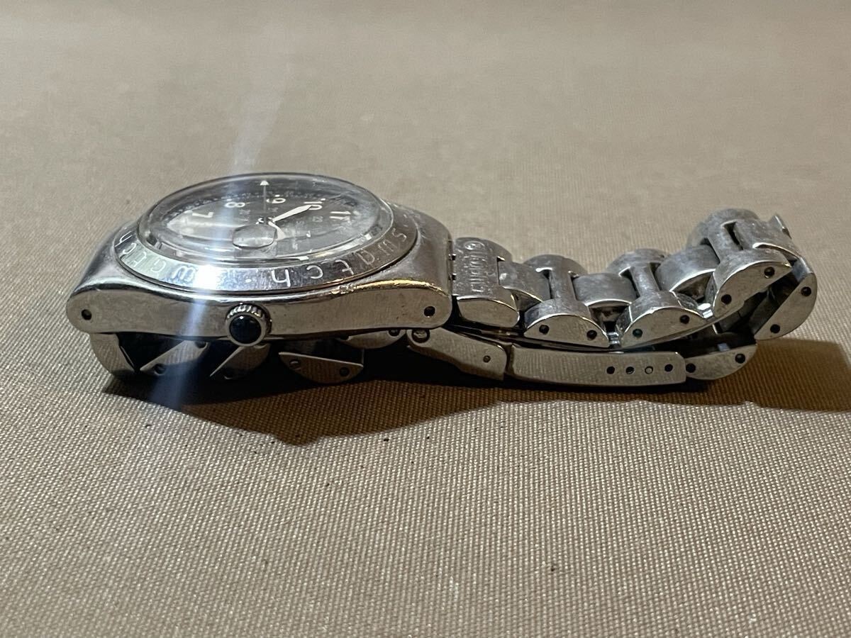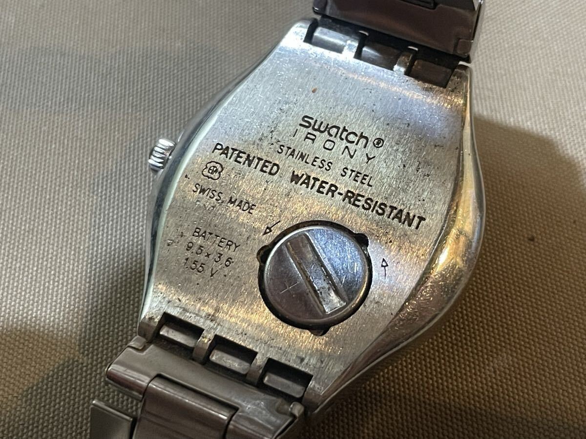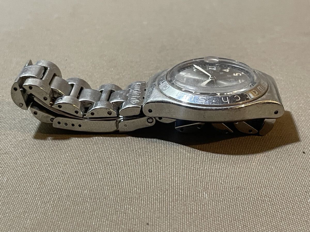 SWATCH スウォッチ IRONY アイロニー SWISS スイス AG2001 カレンダー デイト 日付 日付表示 カレンダー 3針 三針 シルバー ブラック文字盤 電池式 時計 腕時計 メンズ ユニセックス ビンテージ ヴィンテージ レトロ 昭和レトロ レトロ雑貨 古道具 古物 vintage USED