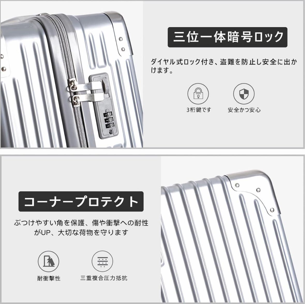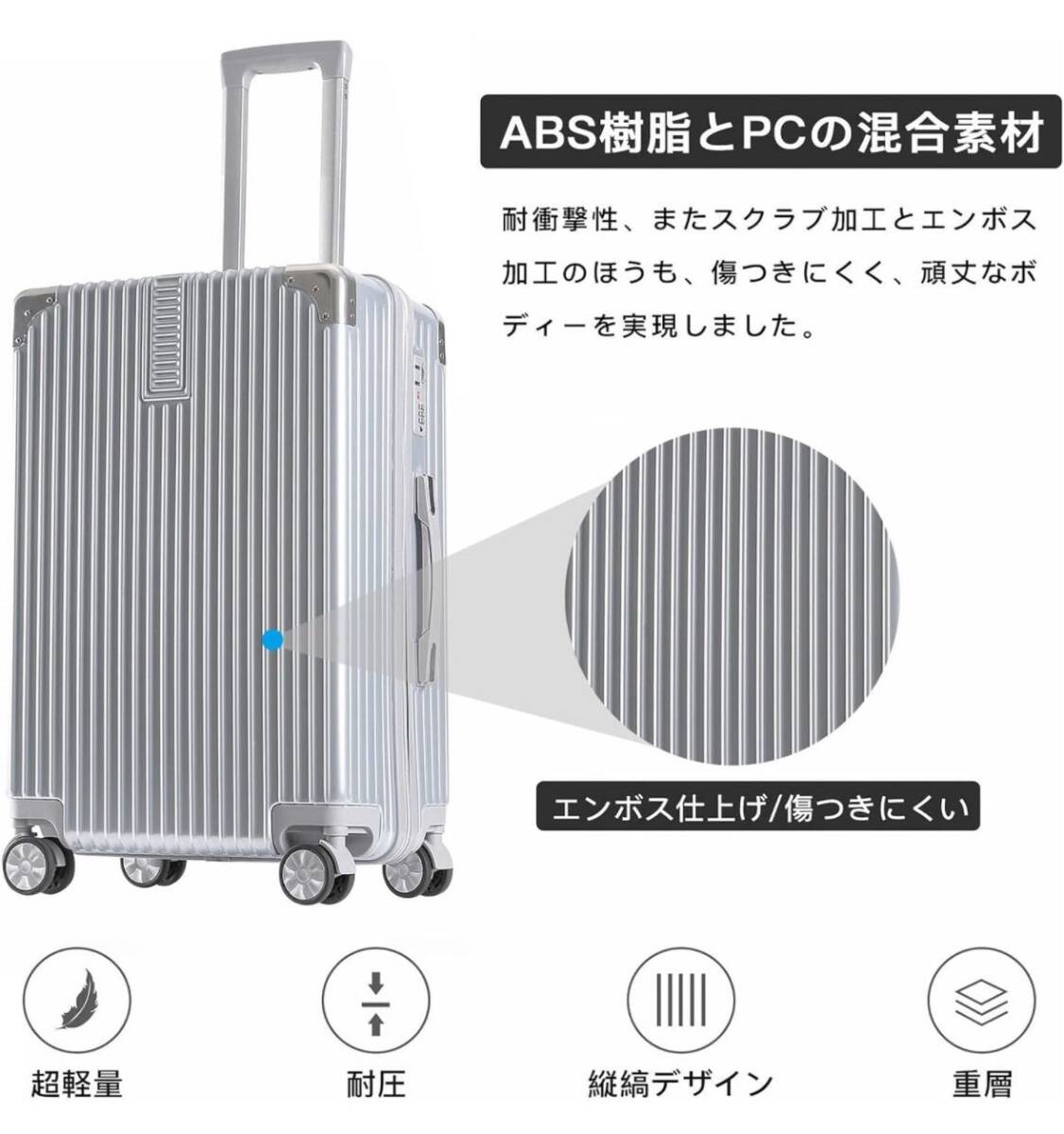 【新登場・超軽量・大容量】スーツケースはABS樹脂とPC混合材料を使用して製造されており、ABSとPCの特性を兼ね備えています。純粋なABS材料よりも頑丈で、純粋なPC材料よりも軽量で、傷がつきにくいです。縦ストライプのデザインを採用しており、シンプルでおしゃれ、超軽量で、女性でも簡単に持ち運べる人気のある旅行用箱です。
