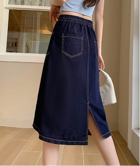 デニムスカート ミディアム丈スカート ひざ丈スカート スリット入り シンプル カジュアル お出かけ レディース XL ブルー