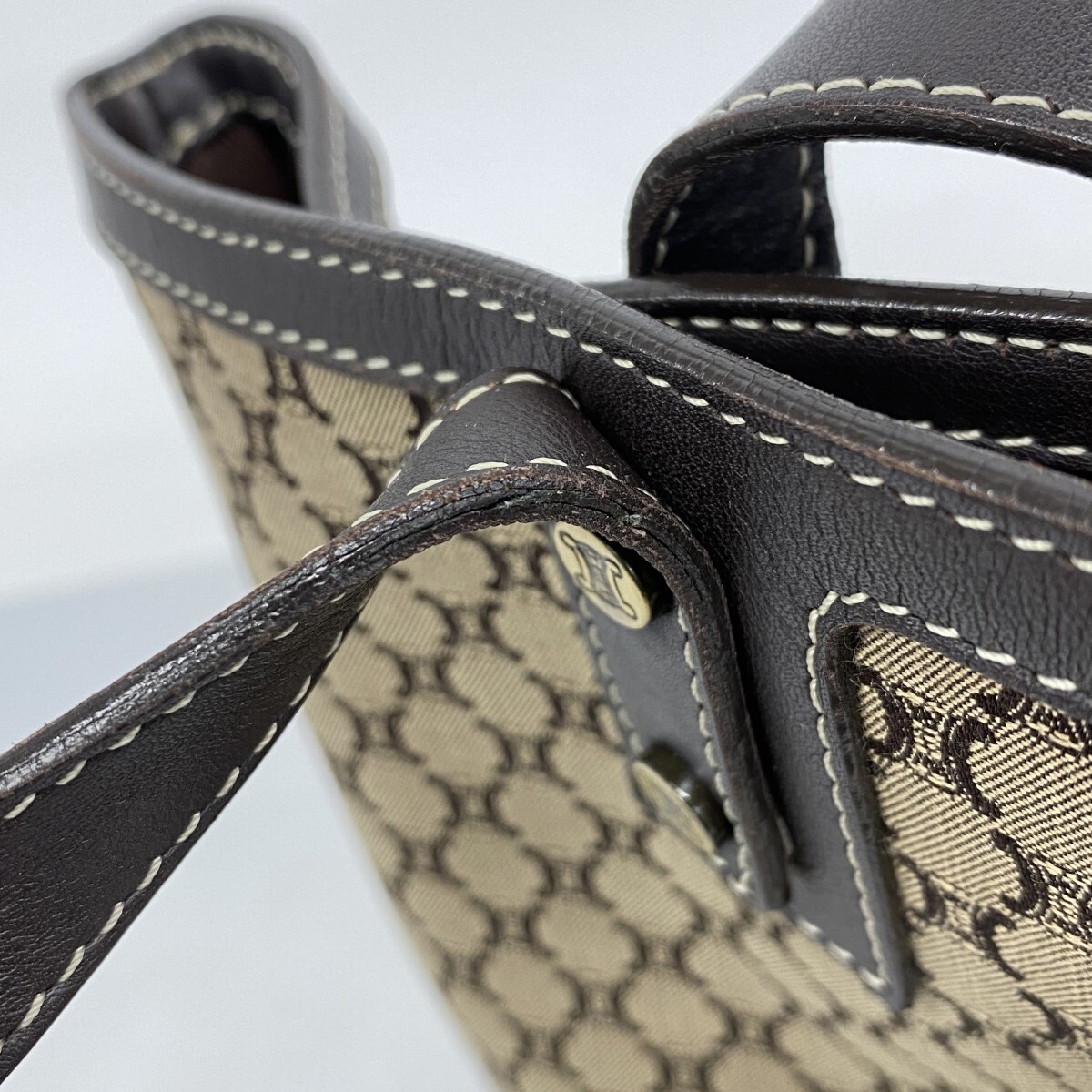 【5ma0117-h】セリーヌ トートバッグ マカダム キャンバス ブラウン ゴールド金具【中古】レディース