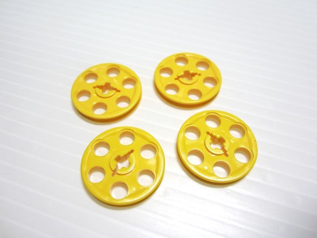 溝のある円盤型パーツで2個のプーリーにベルトをかけ連動させます。