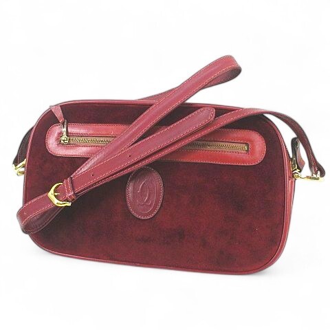 カルティエ Cartier マストライン ショルダーバッグ スエード×カーフ ボルドー 斜め掛け 肩掛け ファスナー イタリア製 レディース