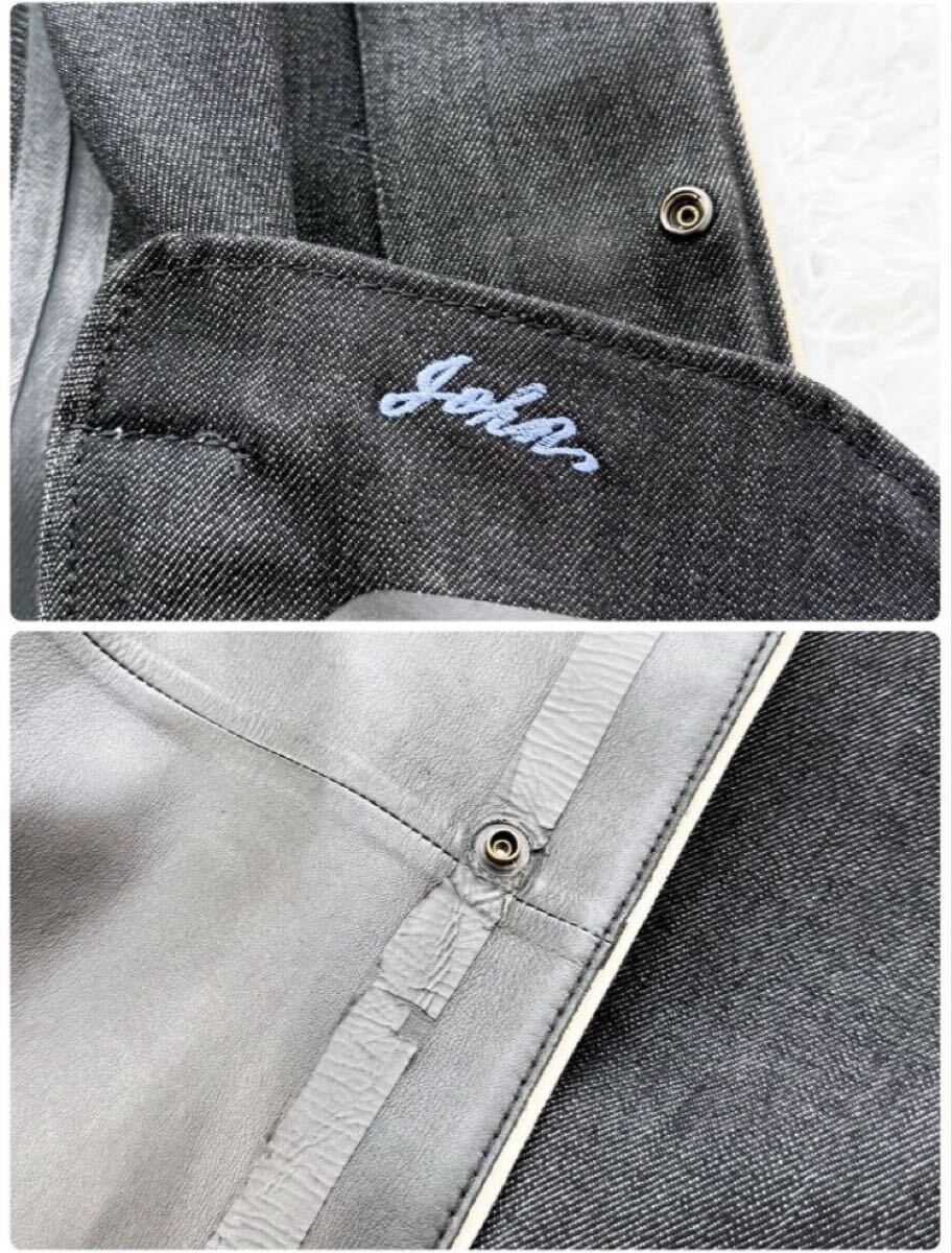 特徴は、裏地にデニムを配した意外性のあるデザイン。カジュアルな素材をあえて内側に仕込み、都会的なエレガンスと男らしいタフさを巧みに融合させています。