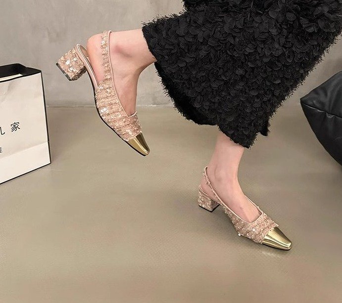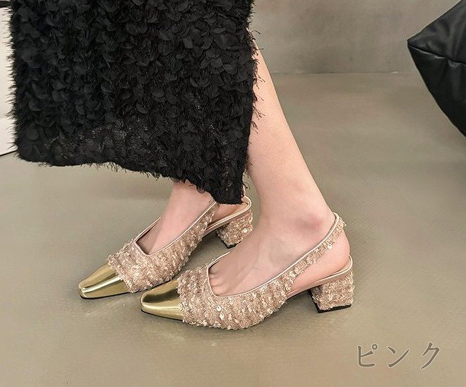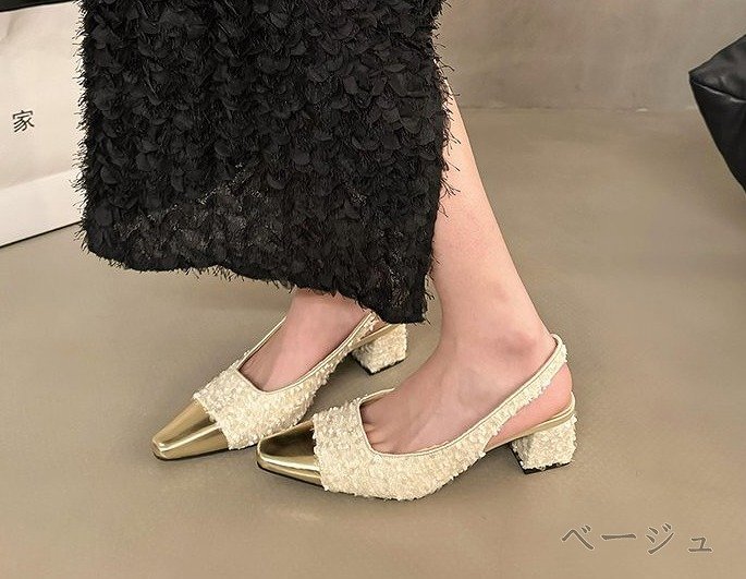 【高品質】全3色 スリッポン ローファー モカシン 太いヒール とんがりトゥ シンプル 35 ベージュ