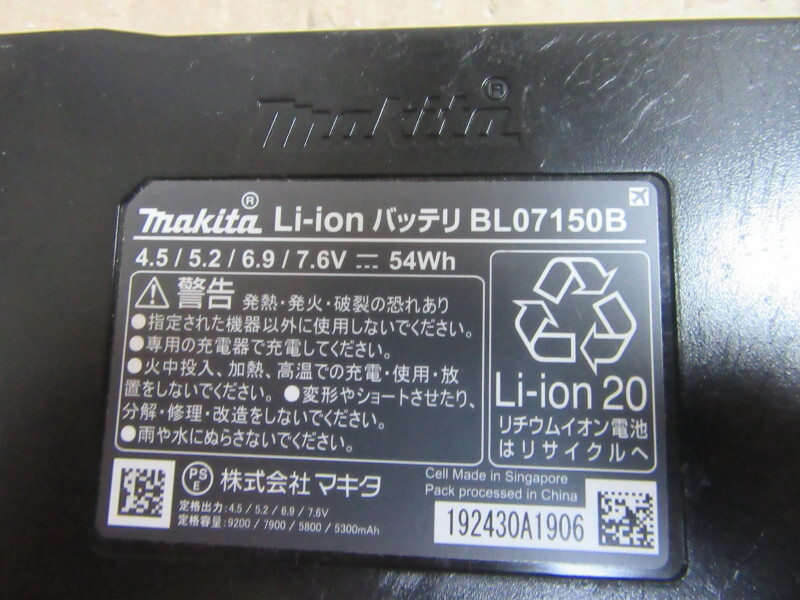 C12: マキタ フアンジャケット 専用充電池 BL07150B