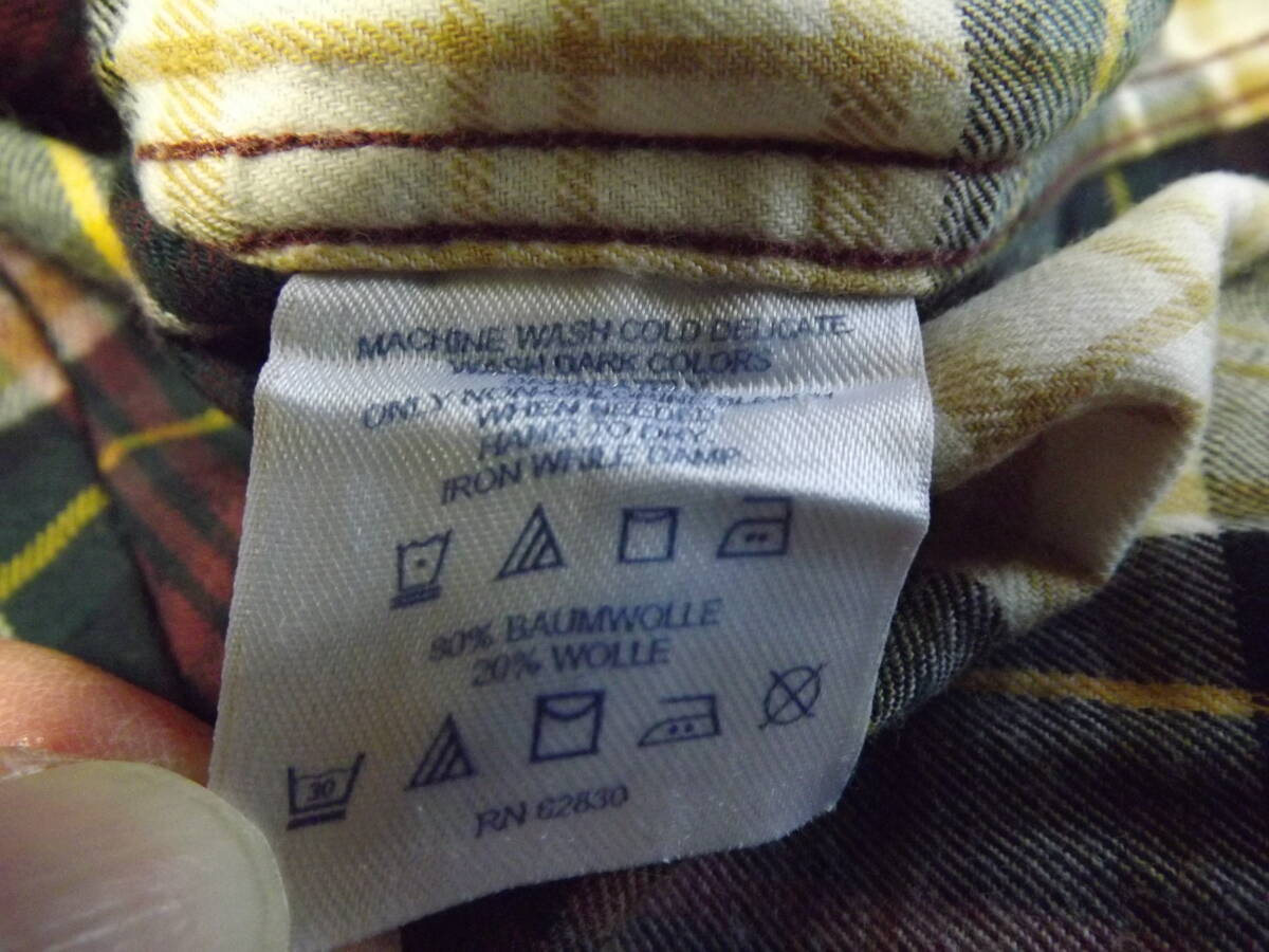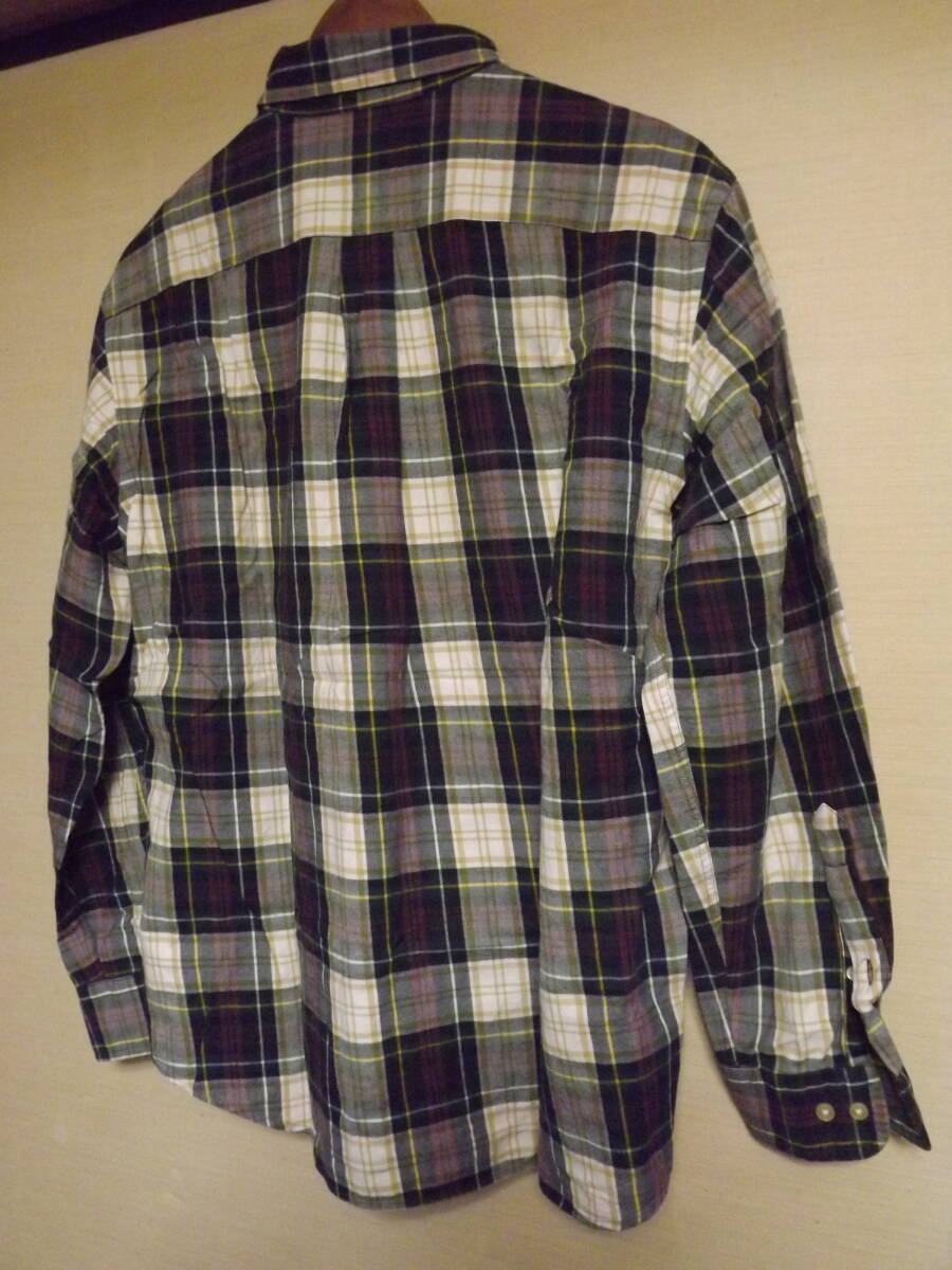 こちらはランズエンドの長袖シャツになります。サイズはM表示で、実寸サイズは身幅53センチ、肩幅46センチ、袖丈53センチ、着丈68センチ位です。中古品ですが、まだまだご使用いただけます。発送は東京からレターパックプラス(600円)になります。いかがでしょうか?