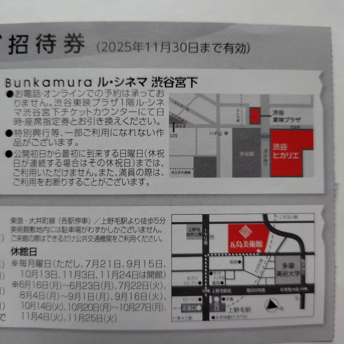Bunkamura ル・シネマでの映画鑑賞券、2枚セット