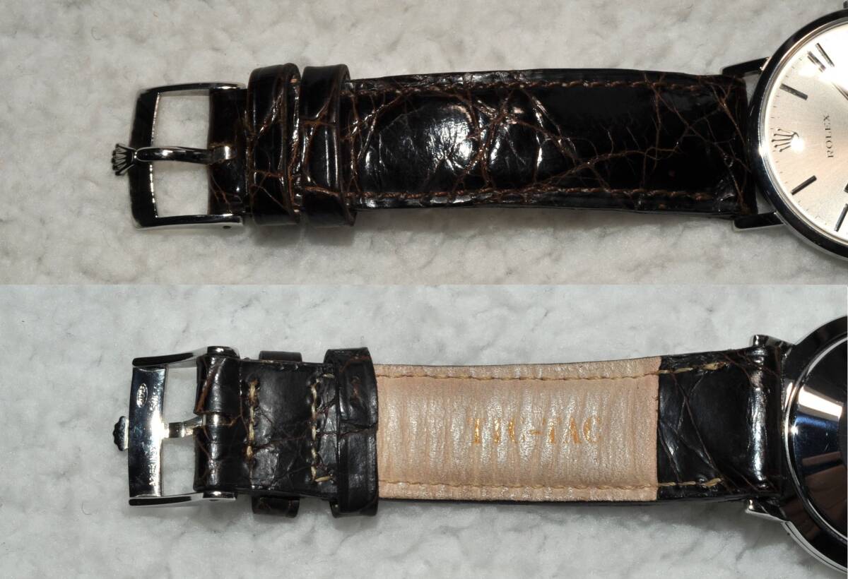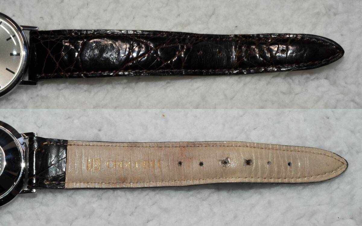 ベルトはダークブラウンのつや有りクロコベルトで、使用感がありますが、きれいです。