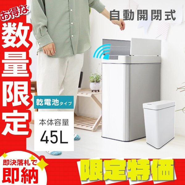 とっても便利!センサーでフタが自動開閉! 手をかざすとセンサーが感知してフタが開きます。 直接手を触れずに開けられるので、とっても衛生的です! 台所はもちろんのこと、赤ちゃんのおむつ捨て、医療の現場にもぴったりです! 手動でも開閉可能!ボタン操作できます。 電池式なので電源を気にせず、どこにでも設定できます☆ 大容量な45Lタイプでシンプルなデザイン。 キッチンやリビングなどに置いてもマッチしやすいです。 【商品仕様】 内容:本体 ×1 カラー:ホワイト 容量:45L サイズ:(約)幅26.5cm×奥行き41cm×高さ57cm 重量:(約)4.3kg 使用電池:単二電池×4(別売) 素材:ステンレススチール、ABS樹脂 他 ※本商品には電池は付属しておりません。 ※紙のゴミ袋には対応しておりません。 ※商品はモニターによって色合いが異なって見える場合があります。 ※仕様/デザインは改良のため予告なく変更することがあります。 |