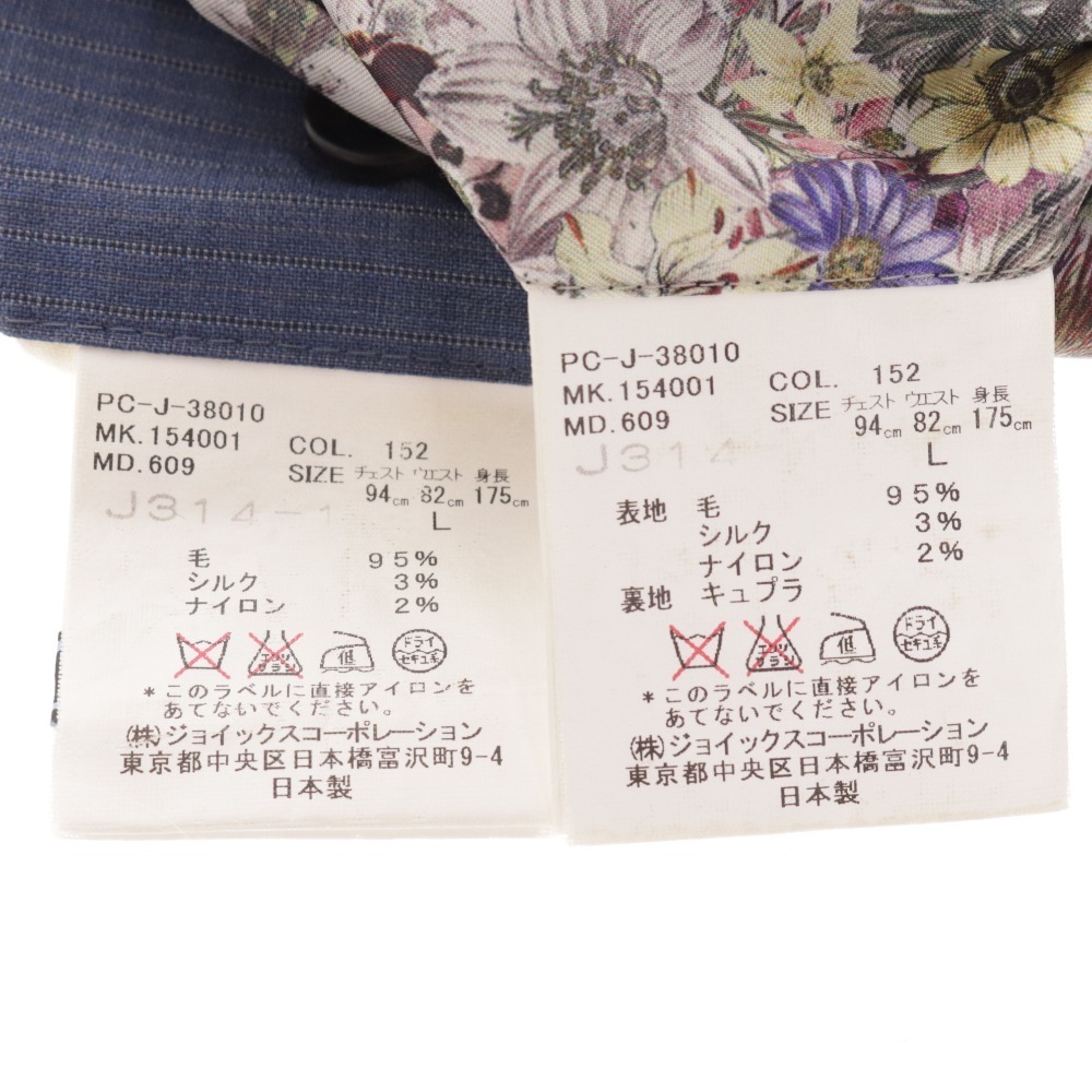ポール・スミス スーツ コレクション セットアップ アウター ボトムス ストライプ 裏地花柄 メンズ L ブルー系 付属品付き 付属品:写真のものが全てです 【上着】 ●表記サイズ:L ○実寸 着丈:71.5cm 肩幅:45cm 身幅:51cm 袖丈:63cm 【パンツ】 ●表記サイズ:L ○実寸 ウエスト周り(平置き幅×2):82cm 股下:79cm わたり:31cm すそ幅:19cm 前股上:26cm ヒップ:102cm ⇒ アパレル商品のカラー基準・採寸方法・海外サイズ換算表 (参考)トルソー(マネキン)は男女ともMサイズです。 素材:【ジャケット】 【表地】 毛 95% シルク 3% ナイロン 2% 【裏地】 キュプラ 【ボトムス】 毛 95% シルク 3% ナイロン 2% | ||||||||||||||||