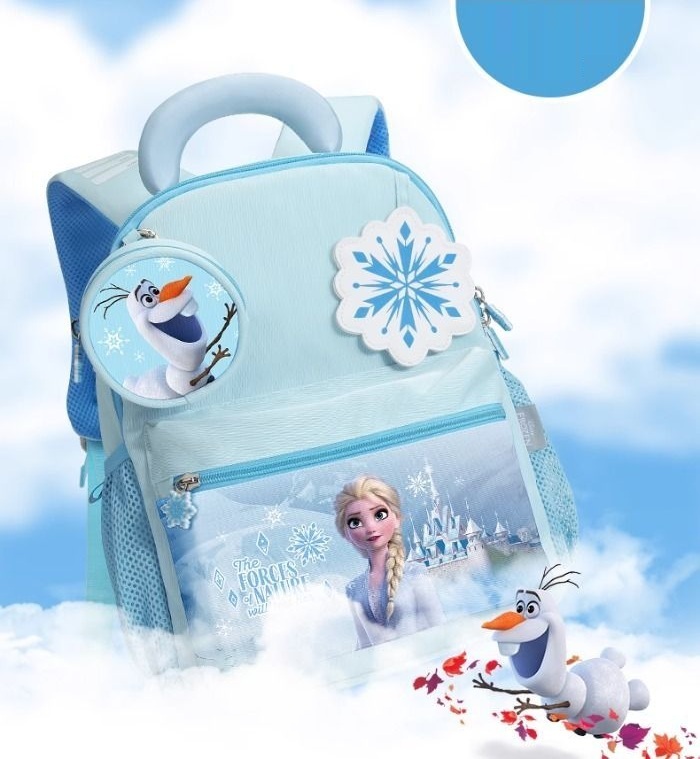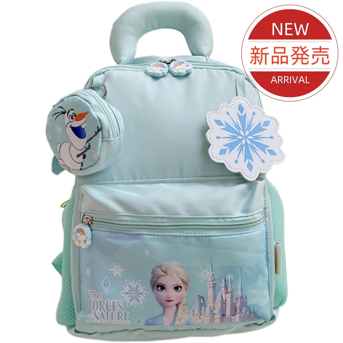 「アナと雪の女王」の人気キャラクター、エルサとオラフがデザインされた可愛いキッズバックパックです。
