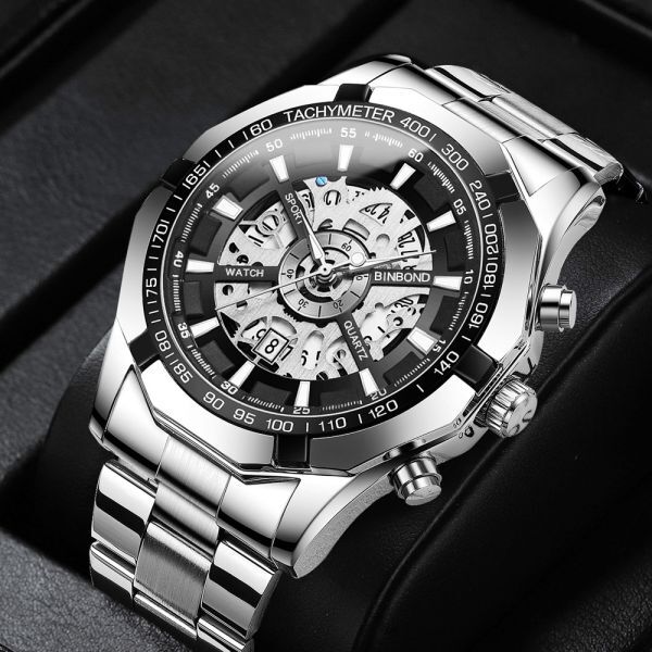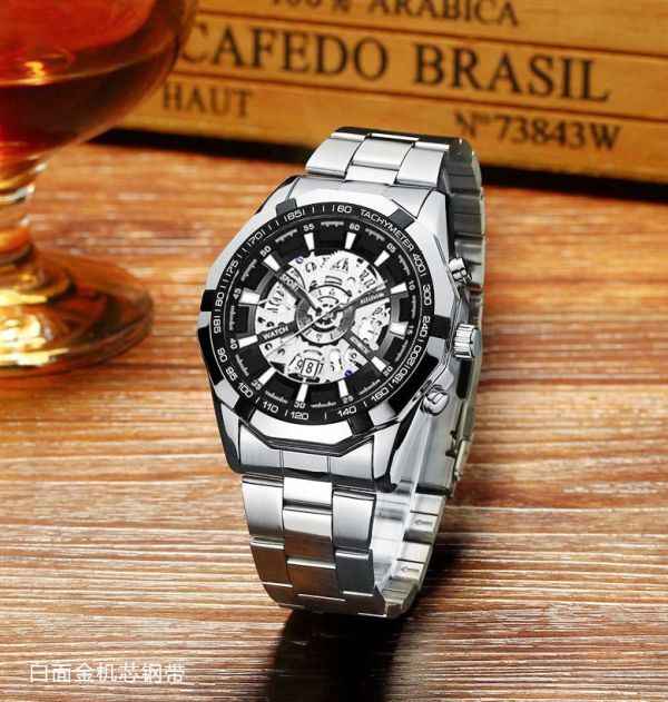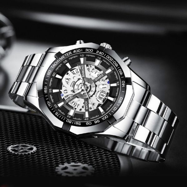 【新品】 メンズ腕時計 防水 耐衝撃 ステンレス ウォッチ アナログ ビジネス シルバー デイト表示 T05SL 1円