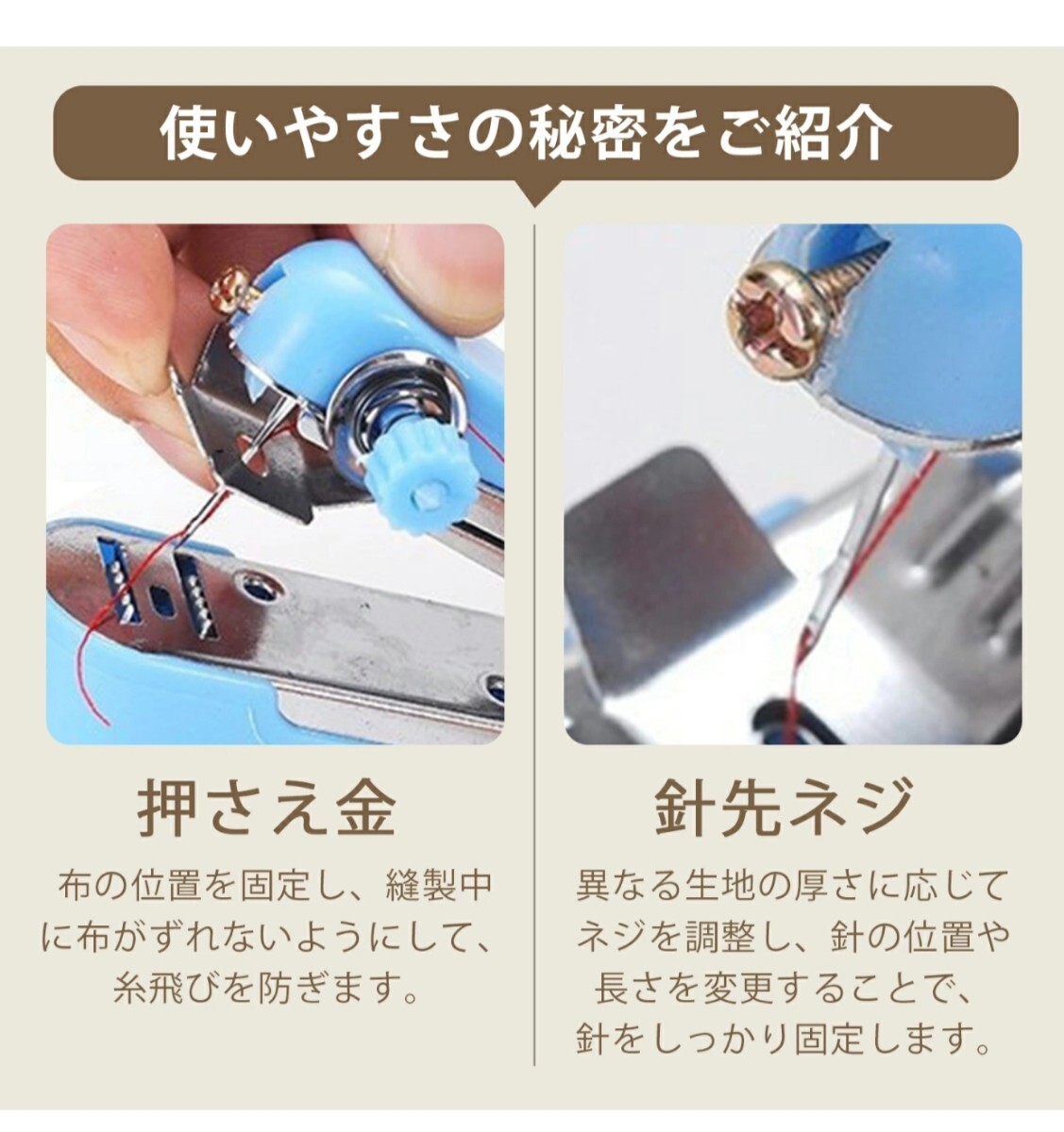 初心者でも使いやすい、おしゃれなハンディミシンです。