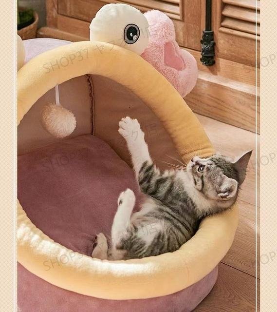 猫や小型犬に適した居心地のペットベッドです。ペットが楽に出入りできるようにデザインしております。