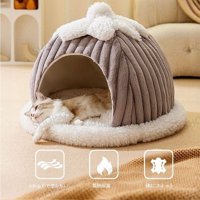猫や小型犬に適した居心地のペットベッドです。ペットが楽に出入りできるようにデザインしております。