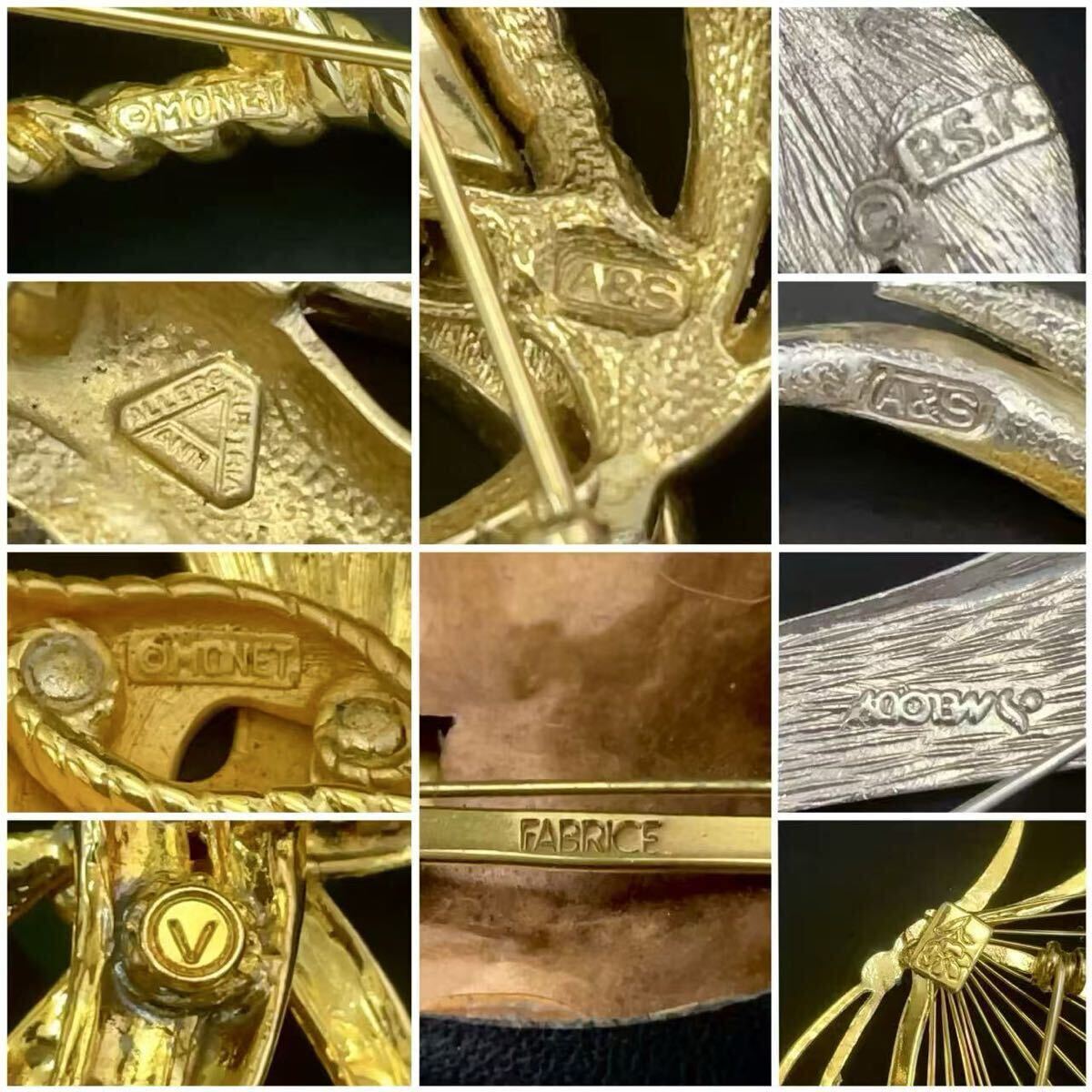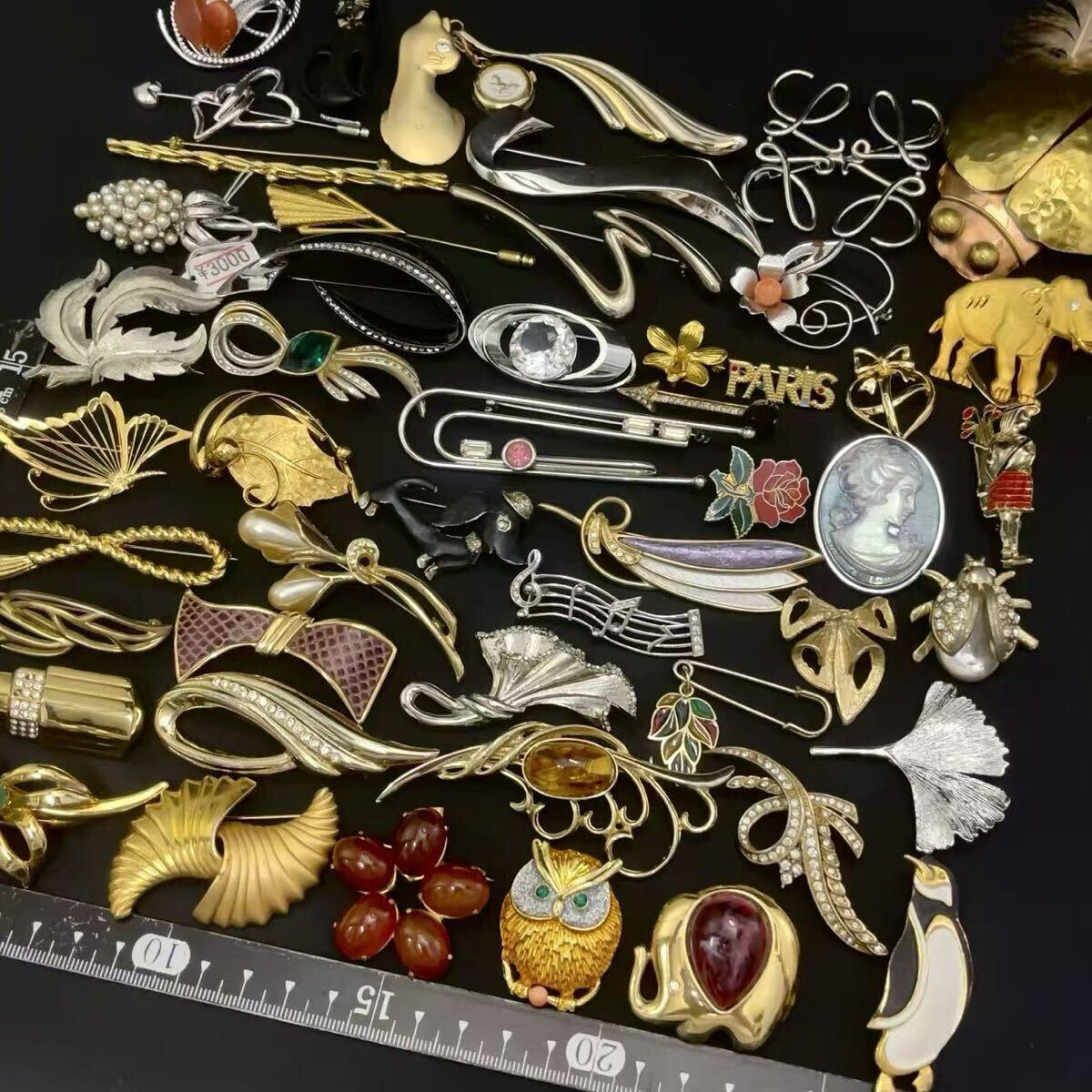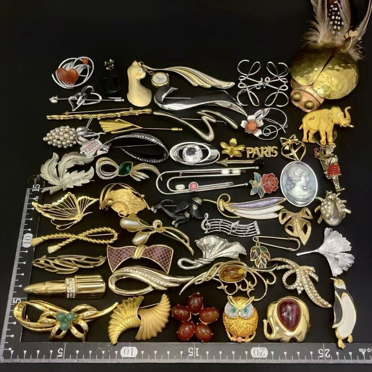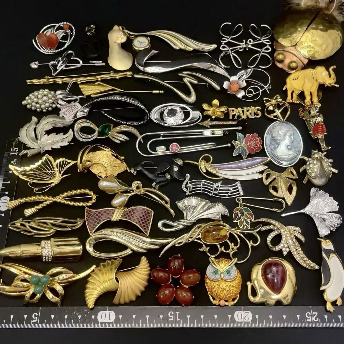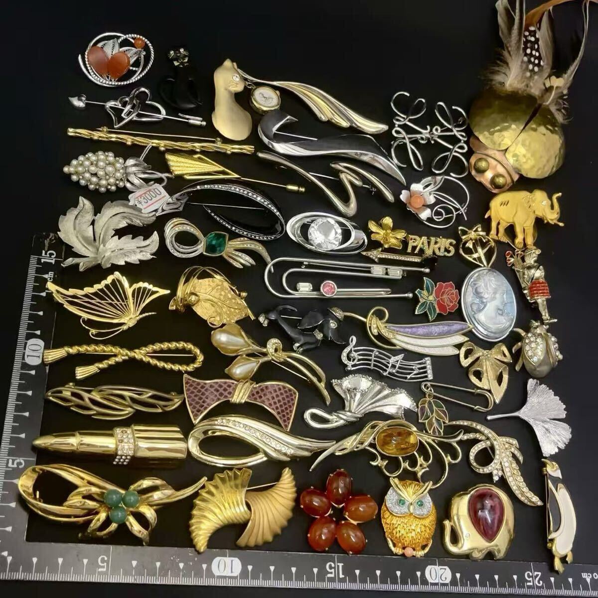 ヴィンテージブローチ 50個まとめ 大量 天然石 七宝焼 パール ゴールド ラインストーン カメオ等 MONET/A&S/B.S.K/Vendome ヴァンドーム等