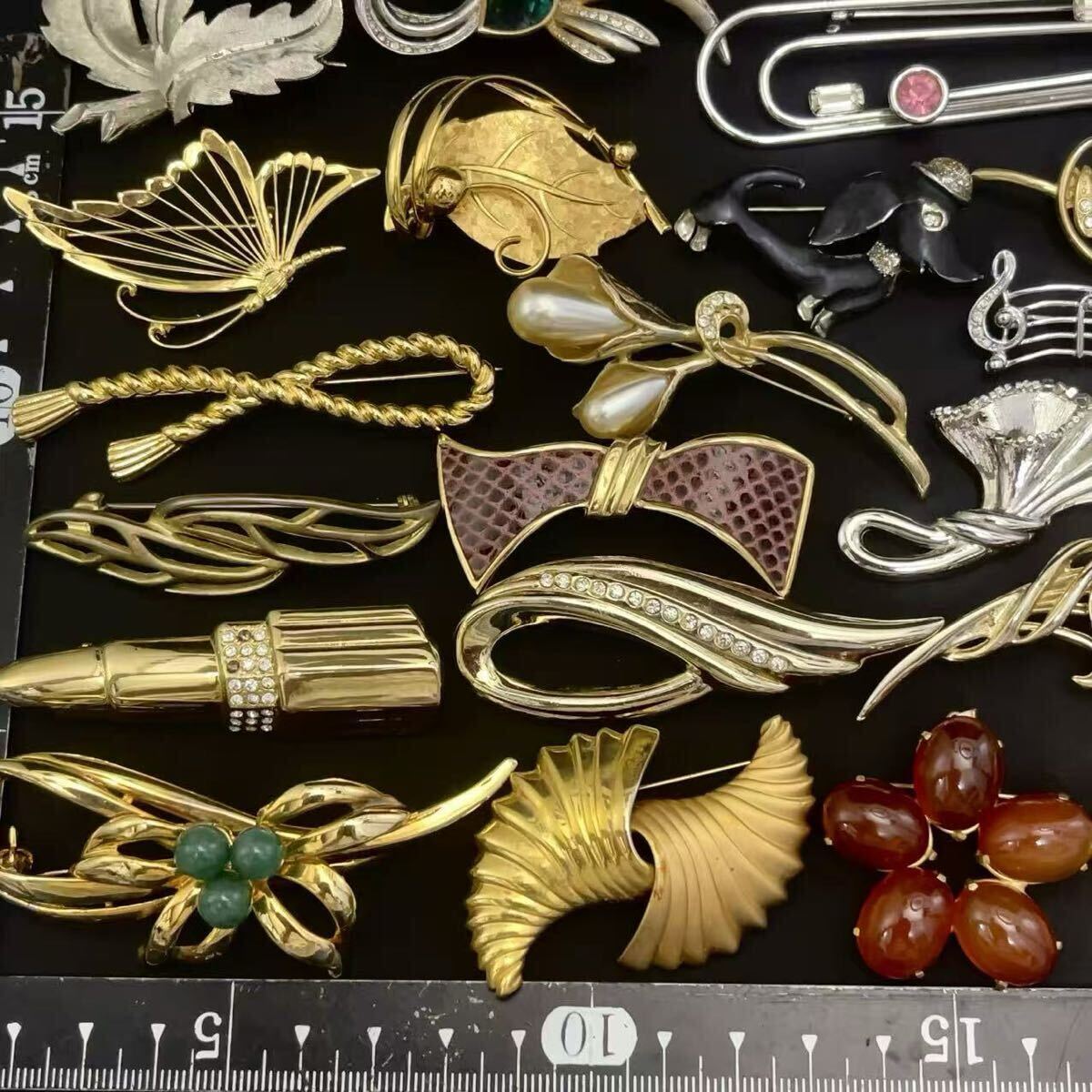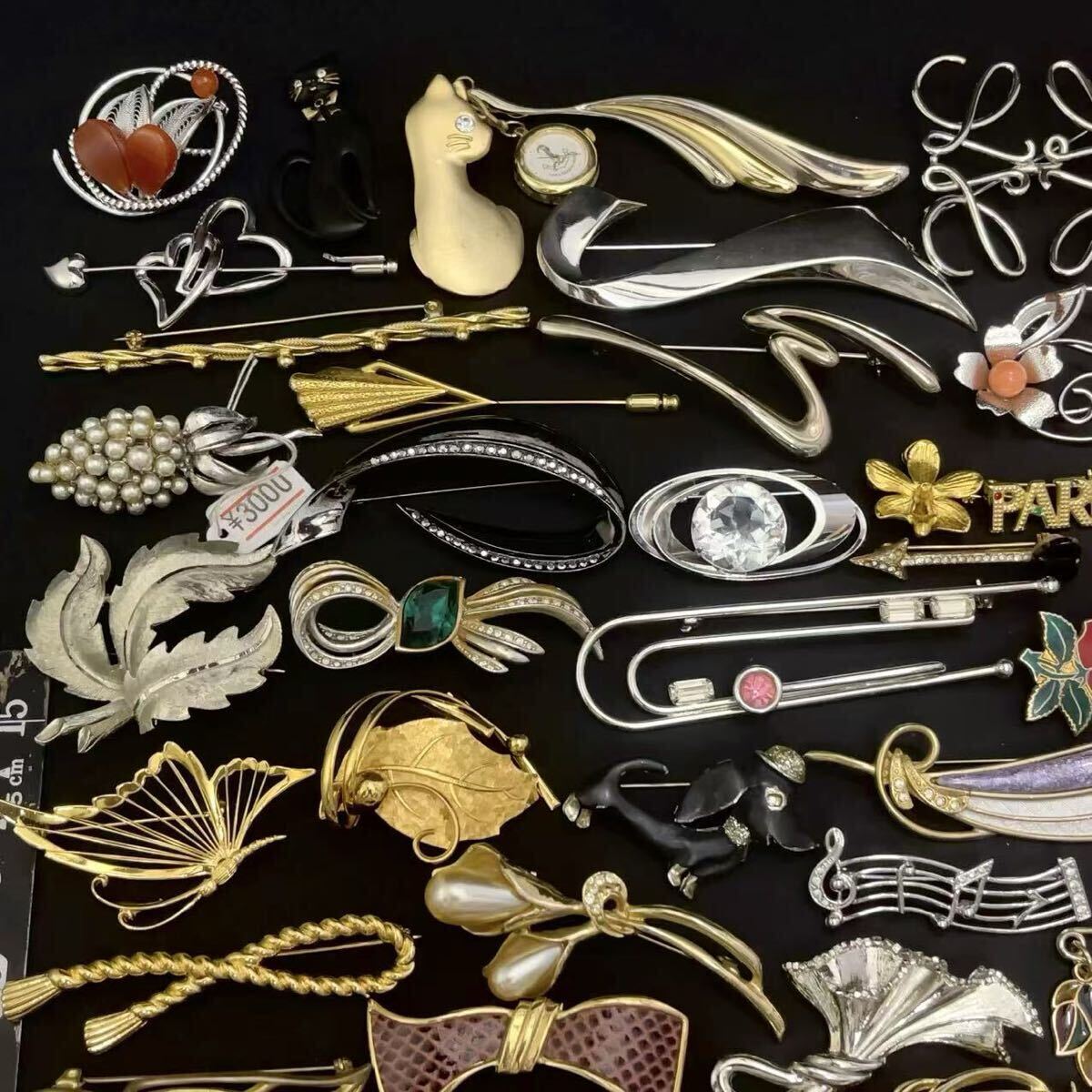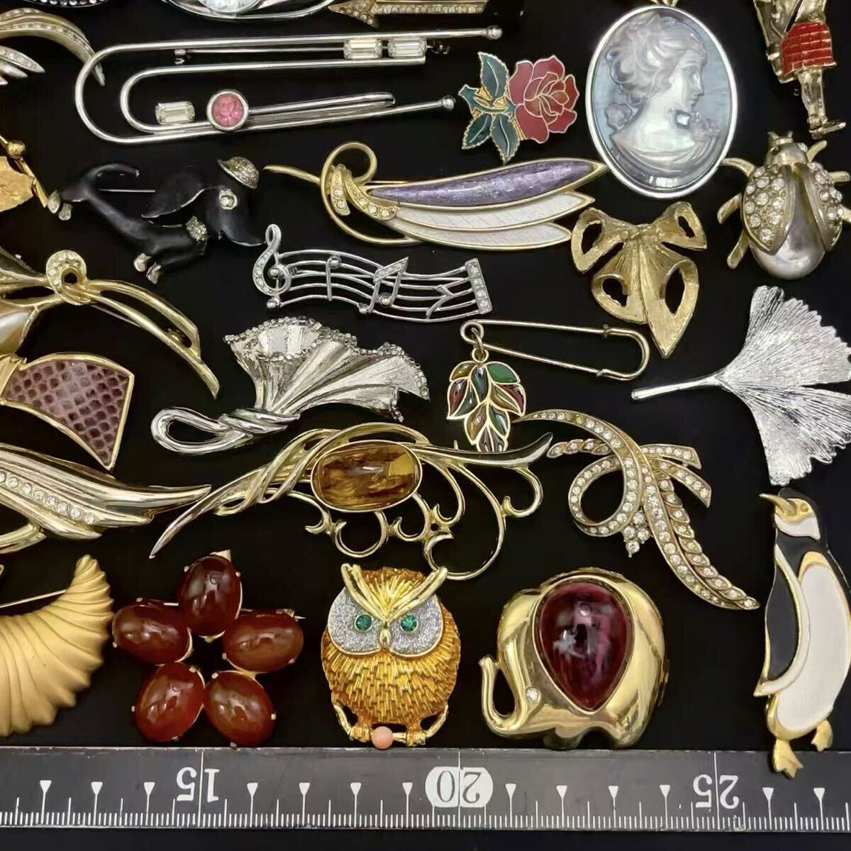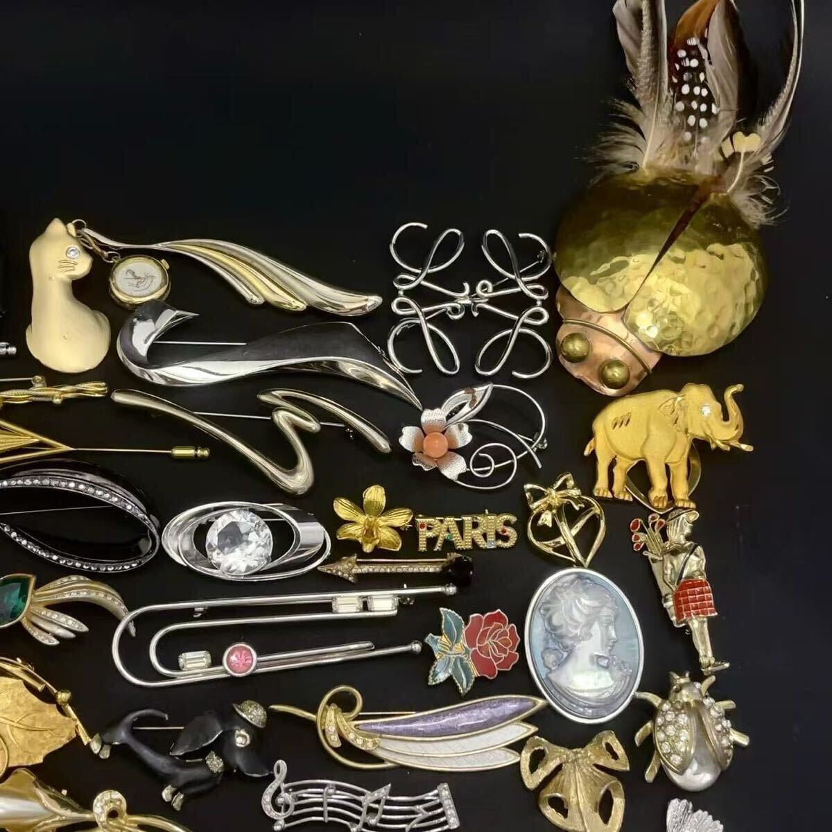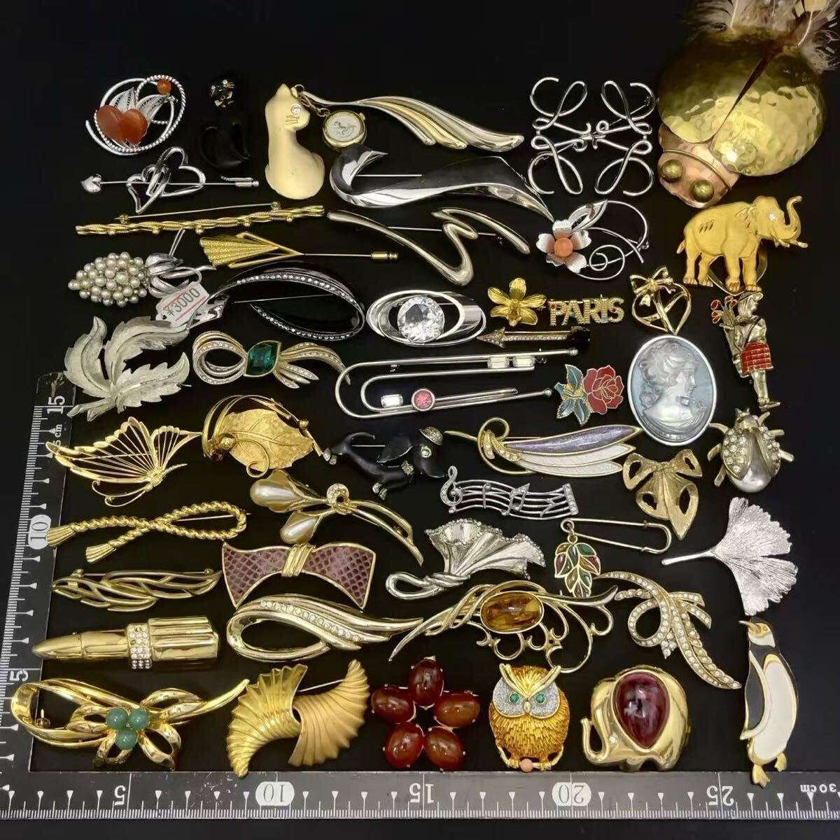 ヴィンテージブローチ 50個まとめ 大量 天然石 七宝焼 パール ゴールド ラインストーン カメオ等 MONET/A&S/B.S.K/Vendome ヴァンドーム等