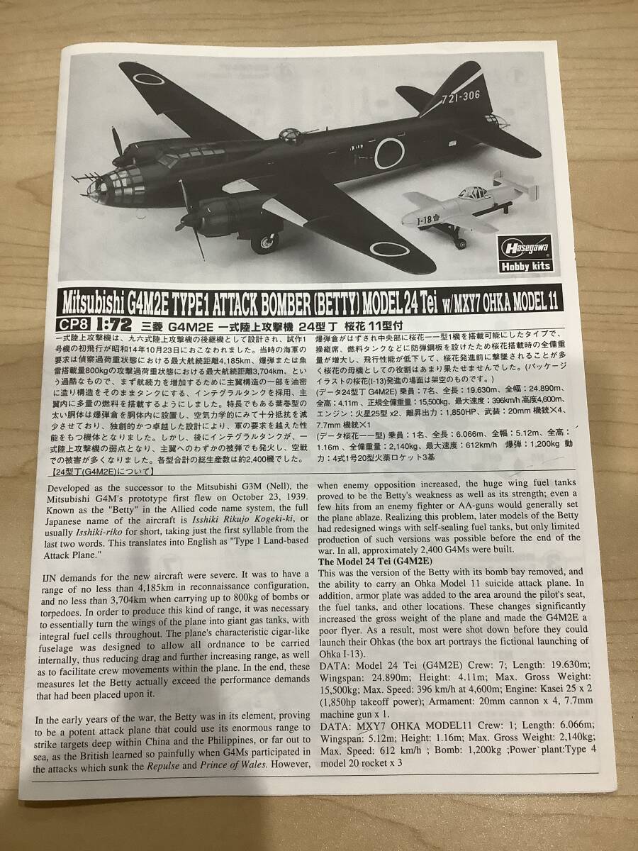 n3171 未組立 ハセガワ 1/72 三菱 一式陸上攻撃機 二四型 丁 桜花 一一型付 G4M2E HASEGAWA Mitrsubishi OHKA