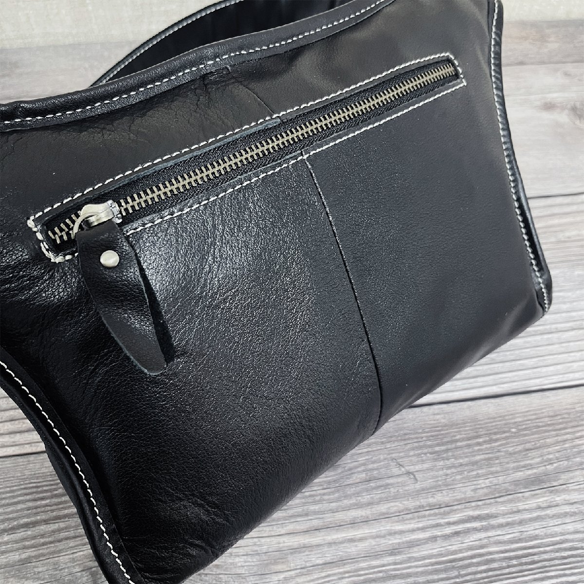 コンパクトでモダンなシルエットに美しいラインと派手すぎない金具と、本革ならではの凹凸あるシボ感と艶感を加え、上品で洗練されたムードが醸し出してくれます。