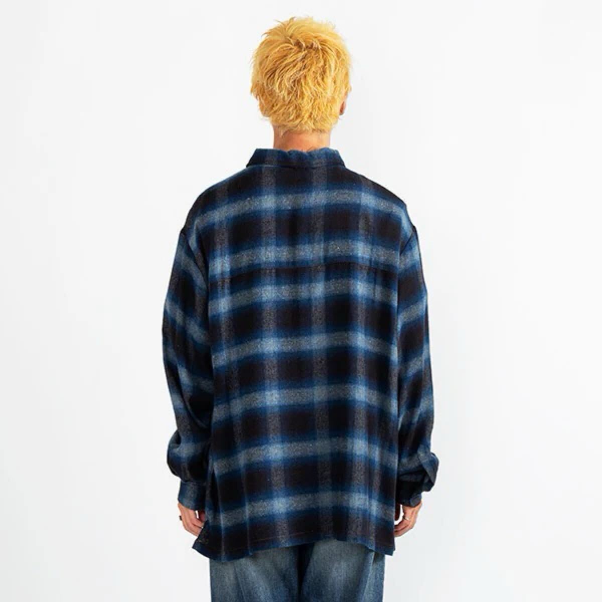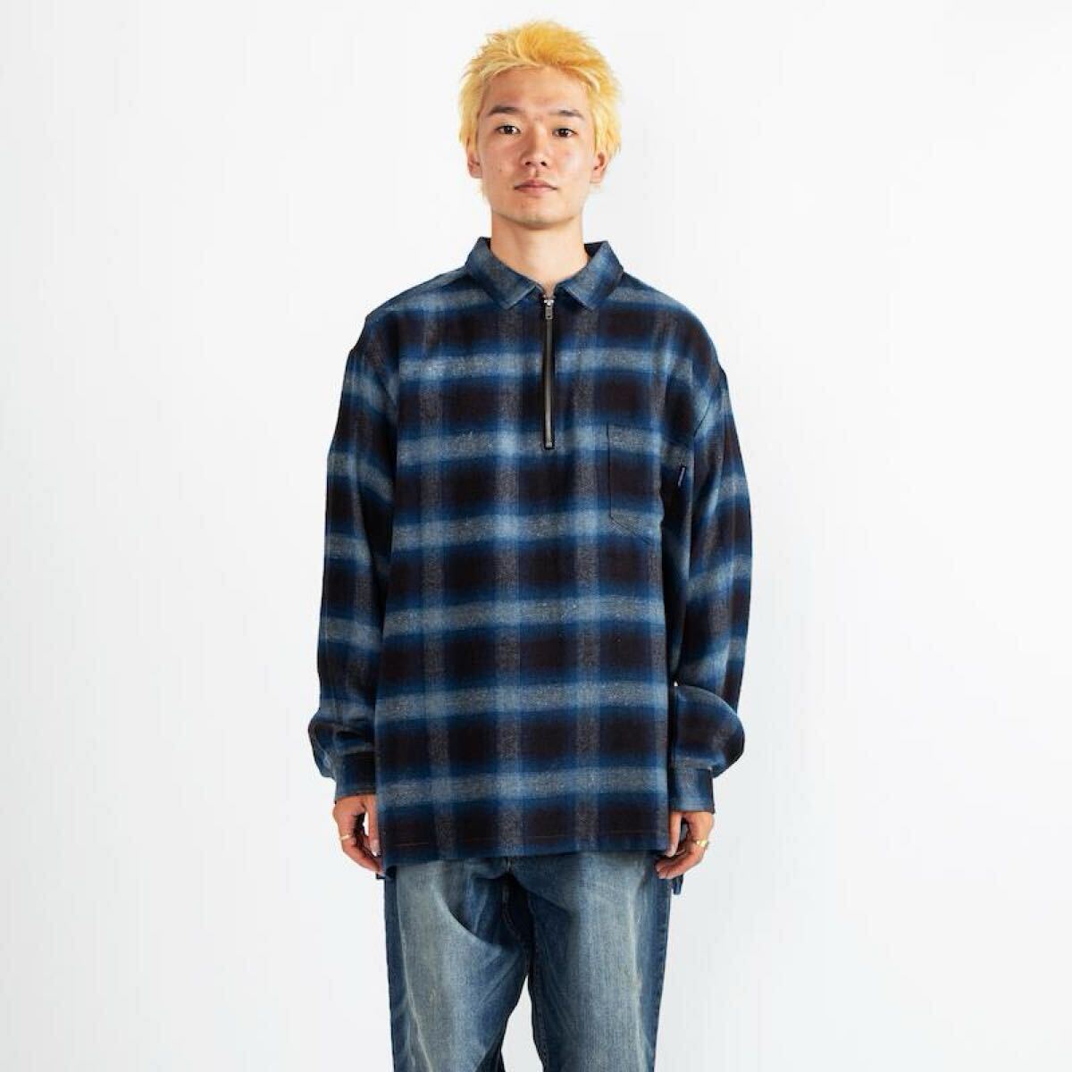 起毛感のある生地で仕立てたハーフジップのオンブレーチェックシャツ。