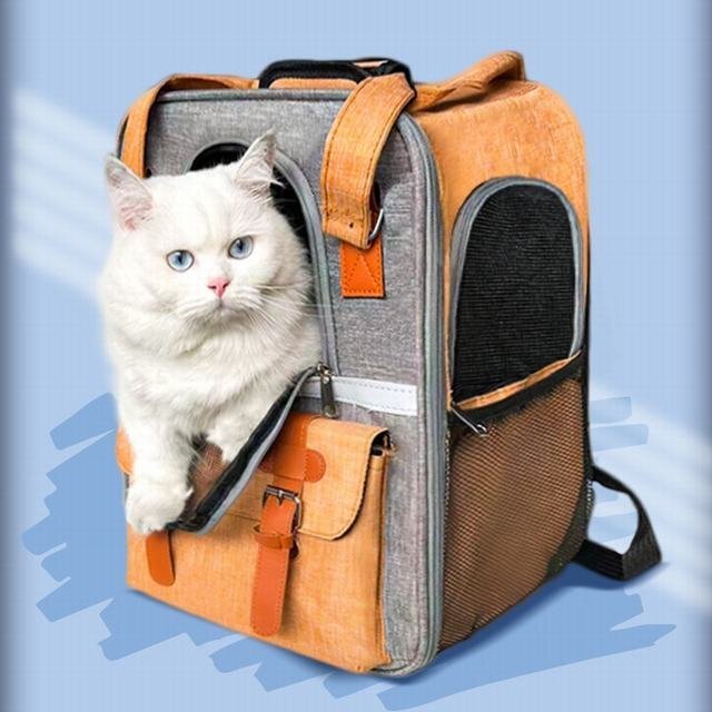 猫 キャリー バッグ リュック ペットキャリー バッグ 猫リュック 猫キャリーバッグ 折りたたみ 変形しない 通気 猫 犬 小型犬 オレンジ