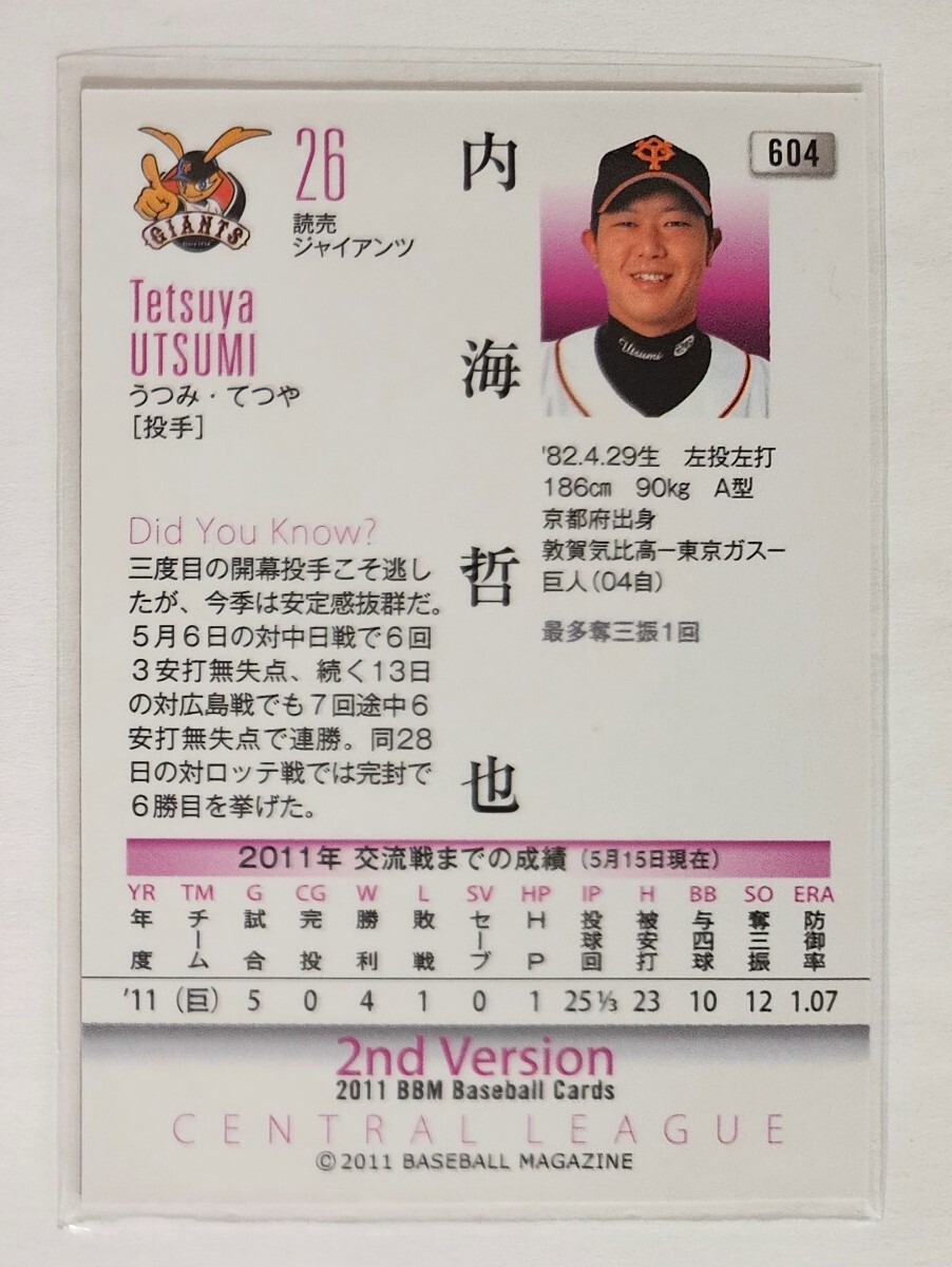 2011年BBM2nd 銀箔サイン入り 内海哲也 巨人 ジャイアンツ