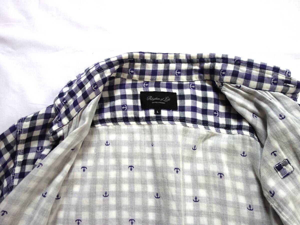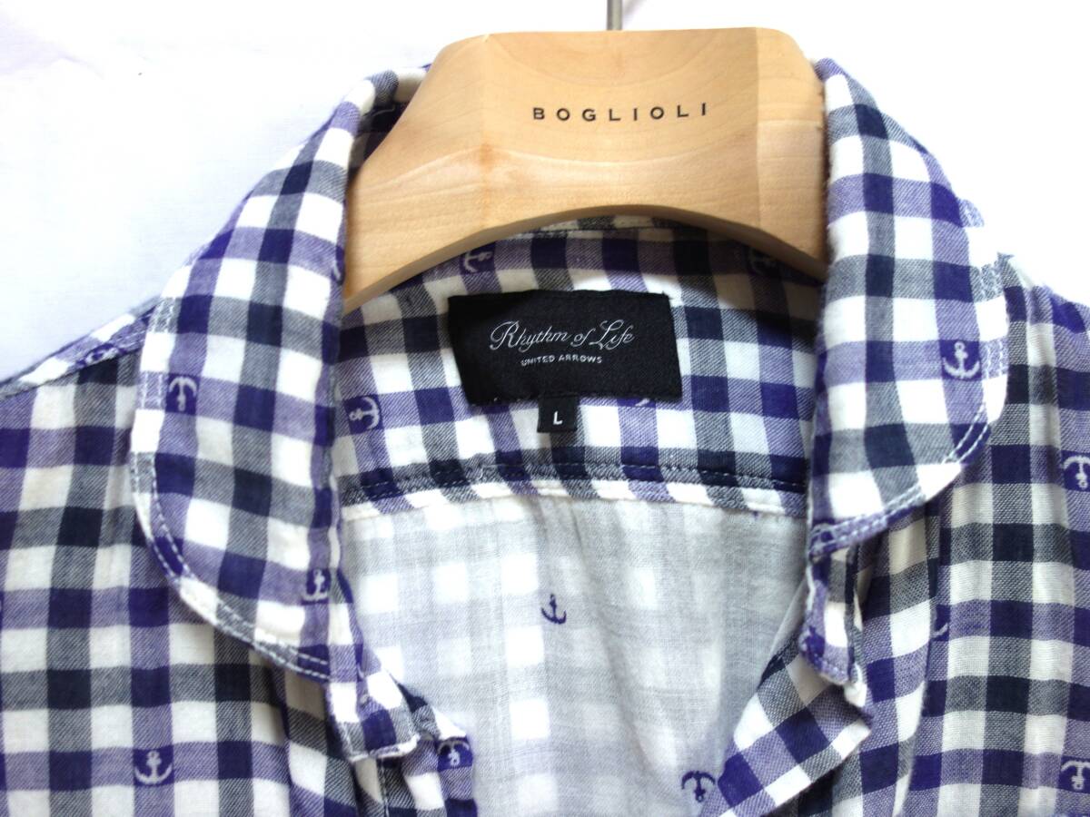 ◆Rhythm of Life UNITED ARROWS/リズムオブライフ シャツ ガーゼ ラウンドカラー 半袖 L◆
