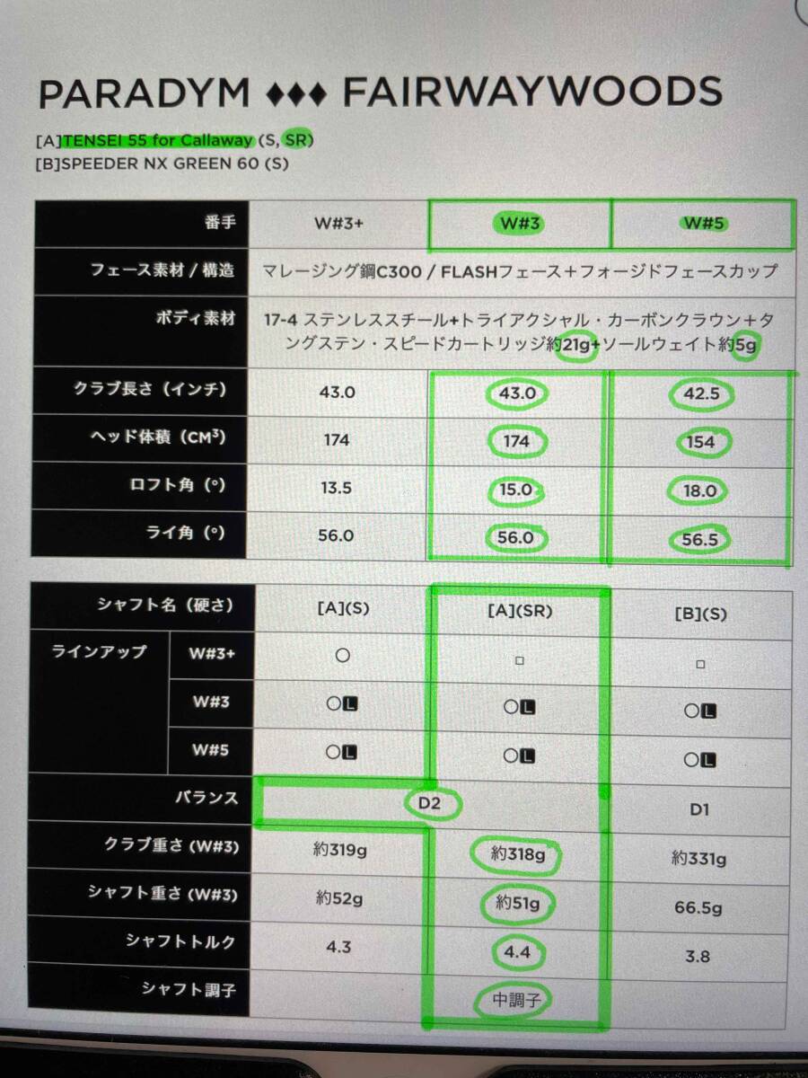 キャロウェイパラダイムトリプルダイヤモンドフェアウエイウッド【3番&5番の2本セット】純正シャフトFlex-SR(調整機能有)