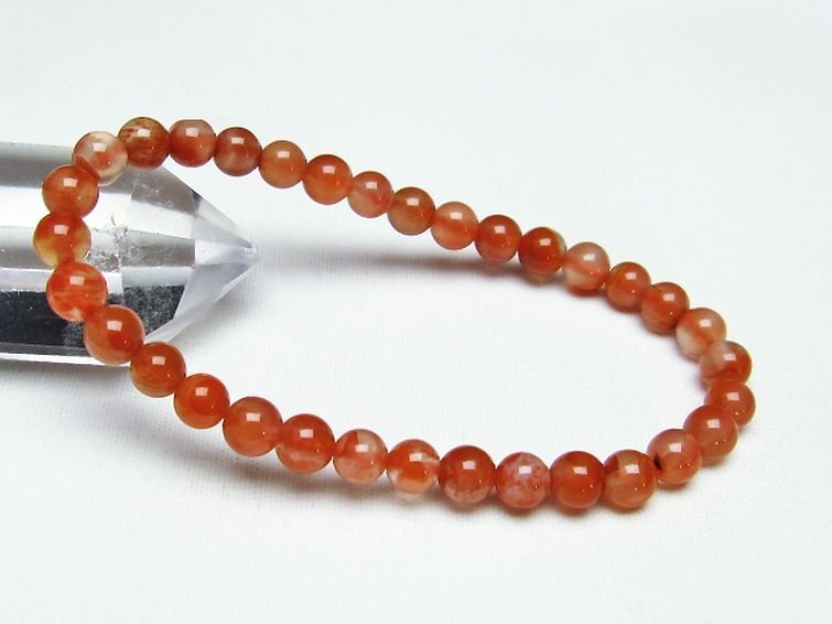 ■商品名: レッドアゲート 赤メノウ ブレスレット ■商品ID: T187-1777 ■商品重量:約 8.4g ■商品サイズ:内周約:159mm(±5mm)粒直径約:6mm(±0.5mm) 【アゲート(瑪瑙)】 和名では瑪瑙(めのう)といい、アゲートの模様が馬の脳のように見える事からこのような名前が付けられました。 アゲートは赤、緑、青、黄、黒など、様々な色に着色されることで石本来のパワーがさらにアップするといわれており、着色により魅力を増す天然石はアゲートだけとも言えます。 さらにはアゲートを組み合わせるとペアになっているペアアゲート(トレジャーメノウ)は龍穴を生み出すとされ、風水的にも良いといわれています。 アゲートは古来より日本やインドやチベットなどで魔よけやお守りとされてきました。 失敗や不幸を遠ざけ金運や仕事運、成功運とも結び付けてくれる効果のほか、安産のお守りにも良いとされています。 さらに家庭円満や対人関係をスムーズにするなど、オールマイティな効果を持った石です。 ⇒ アゲートをもっと詳しく ◆ワンポイント情報 アゲートはカルセドニーの変種で、染色がされていなくともそれぞれの種類に多様な色があります。 ざっと仲間を挙げてみてもオニキス(黒)、サードニクス(橙色)、ブルーアゲート(青)、グリーンアゲート(緑)、イエローアゲート(黄)、ブルーレースアゲート(縞青)、モスアゲート(縞緑)、天眼石(縞黒)、カーネリアン(橙色)、ジャスパー(多様な縞)などとても多くの特徴と色合いを持っています。 |