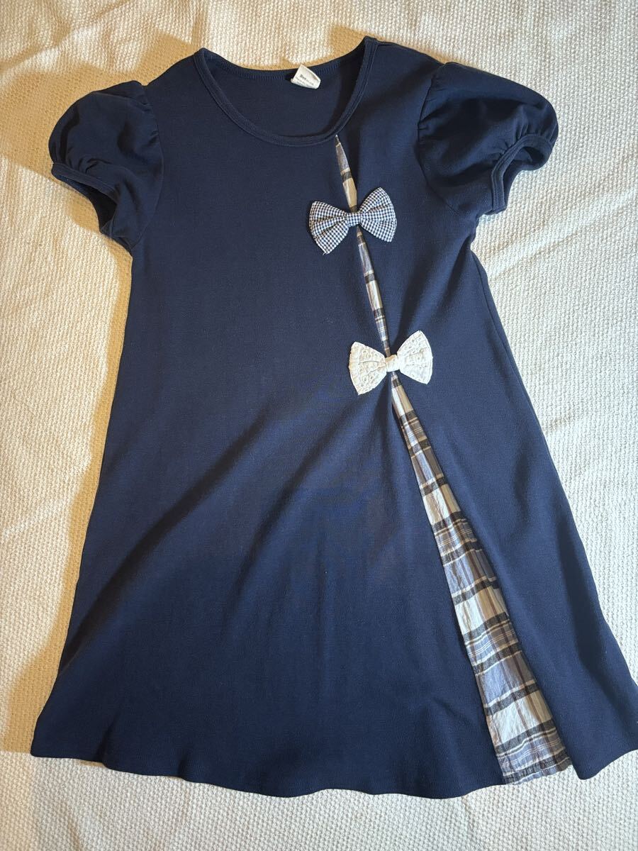 Aラインワンピース 韓国子ども服 140cm 半袖 リボンつき